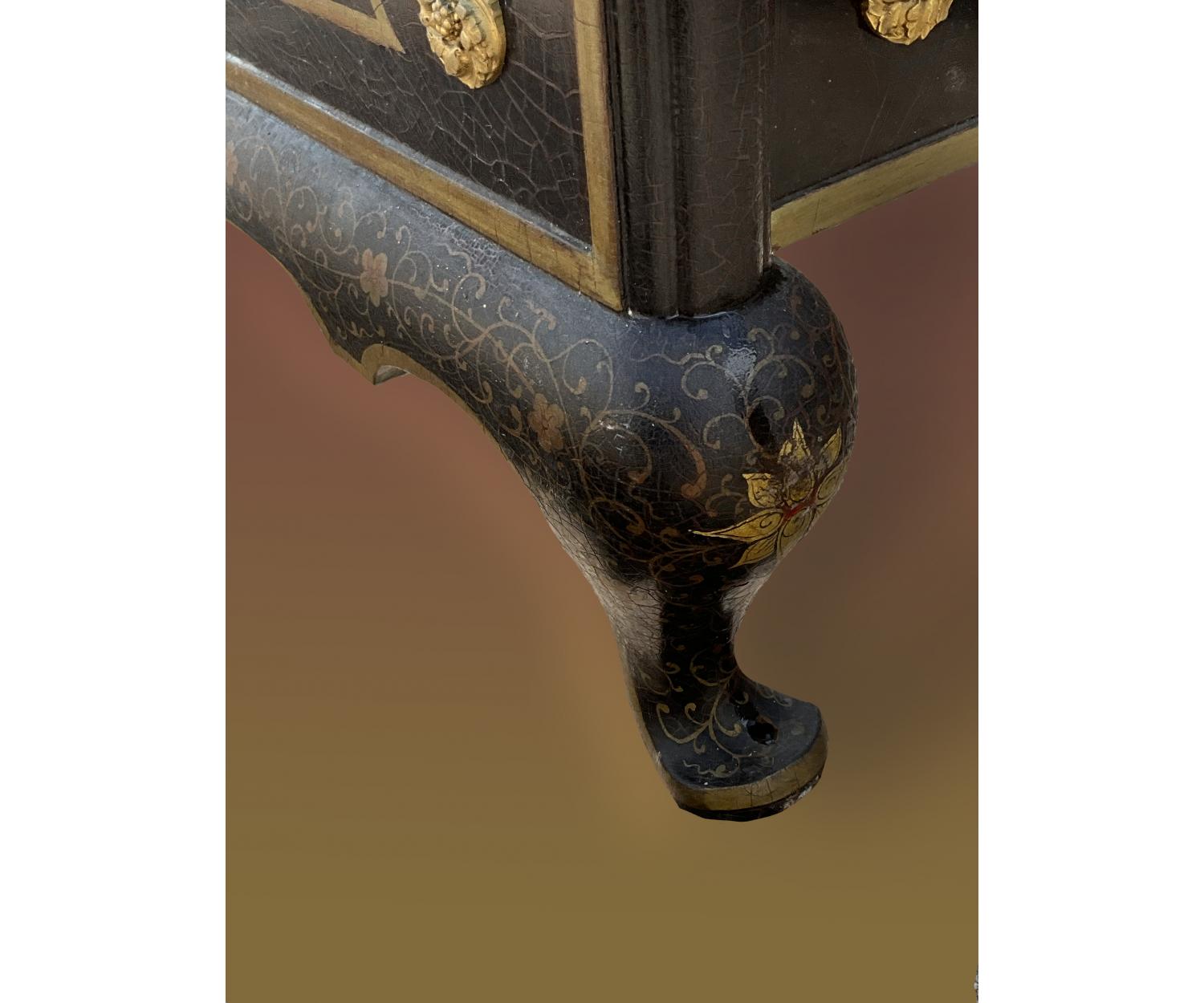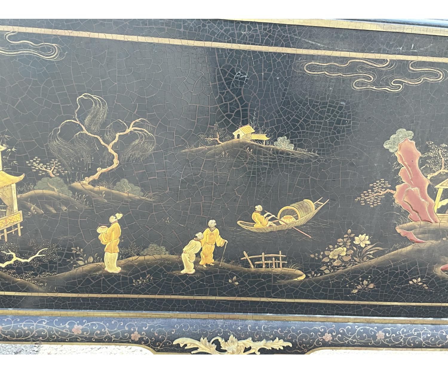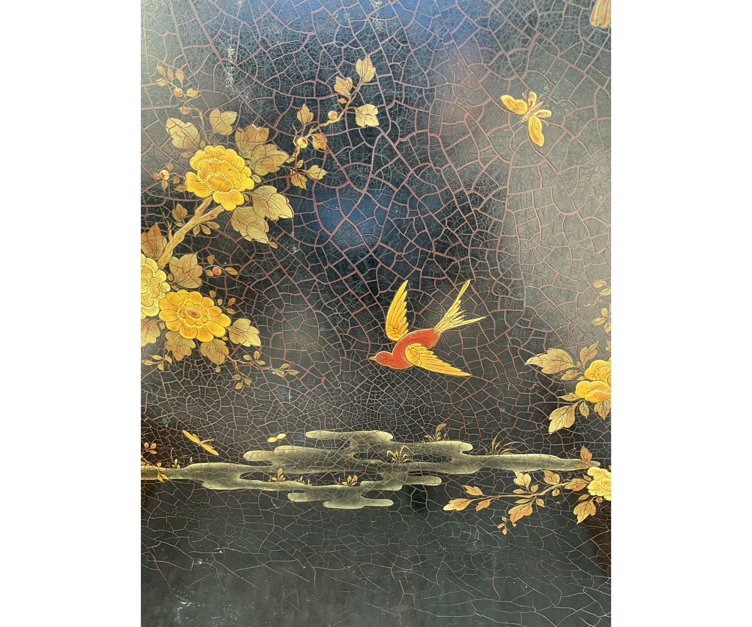 A pair of beautifully decorative and colourful continental single beds in Japanese taste. Stamped G.V.Pillinini. Lacquered with attractive chinoiserie details. Dimensions inside W 116cm x 200cm (3'10'' x 6'6'') Outside to outside 130cm x 211cm.