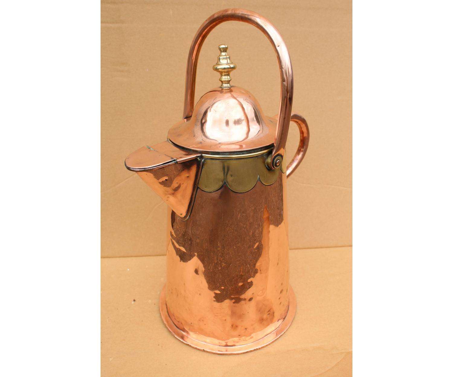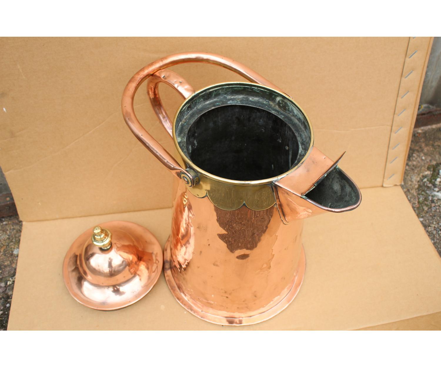Large Cooper Water Jug with brass decoration. Circa 1860