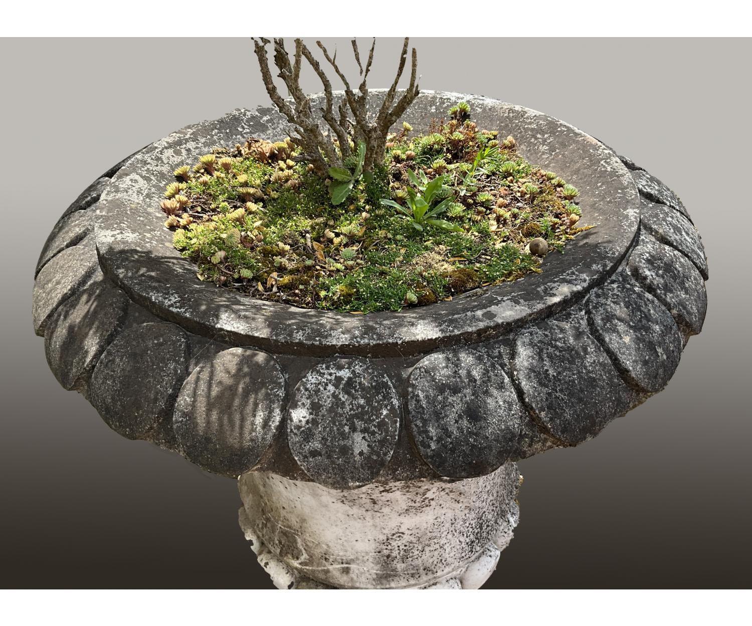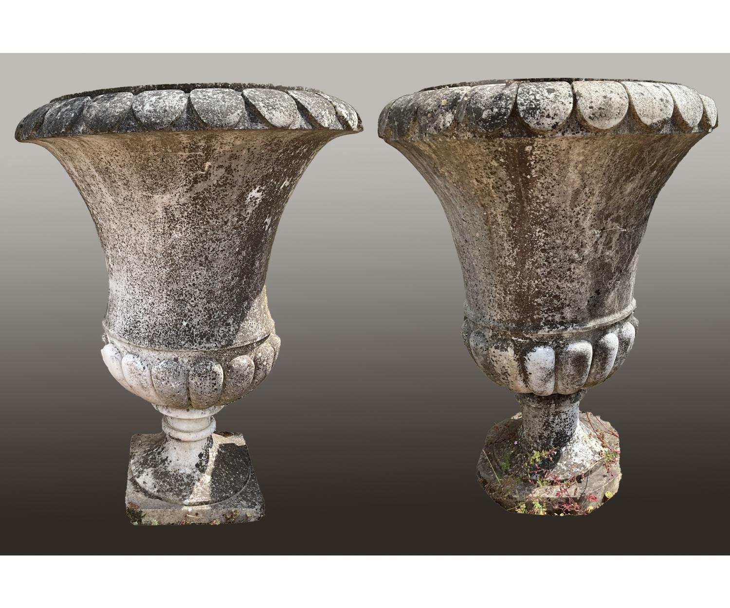 A Near Pair of Large Carved Marble Garden Urns. c.1900 - £4250