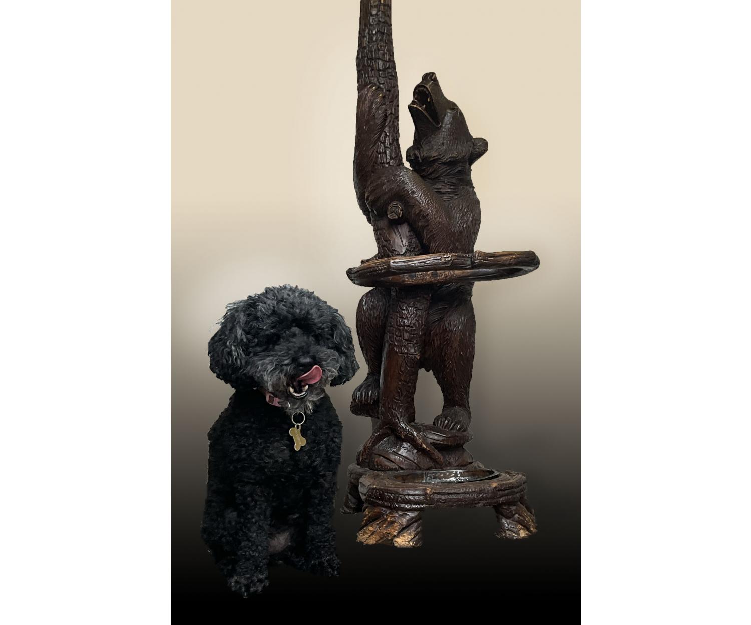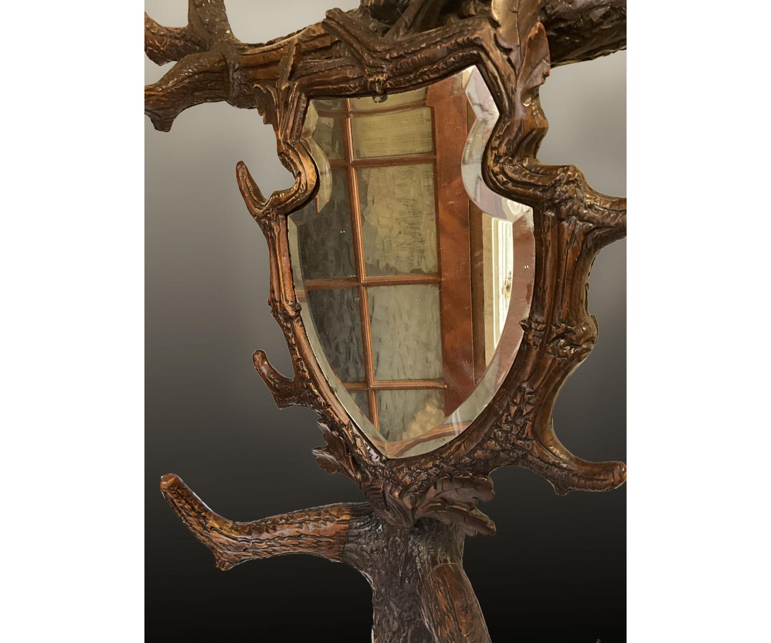 The antique style and period (circa 1870) of this hall stand is sure to add a touch of character to any room, this black forest carved wood Hall stand is the perfect choice.