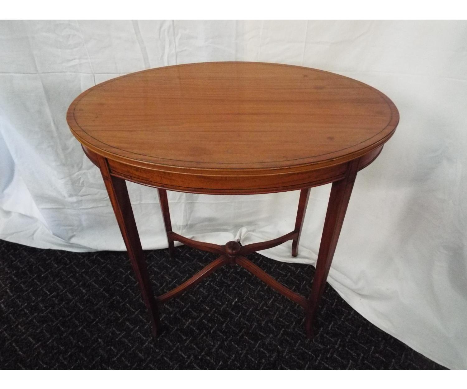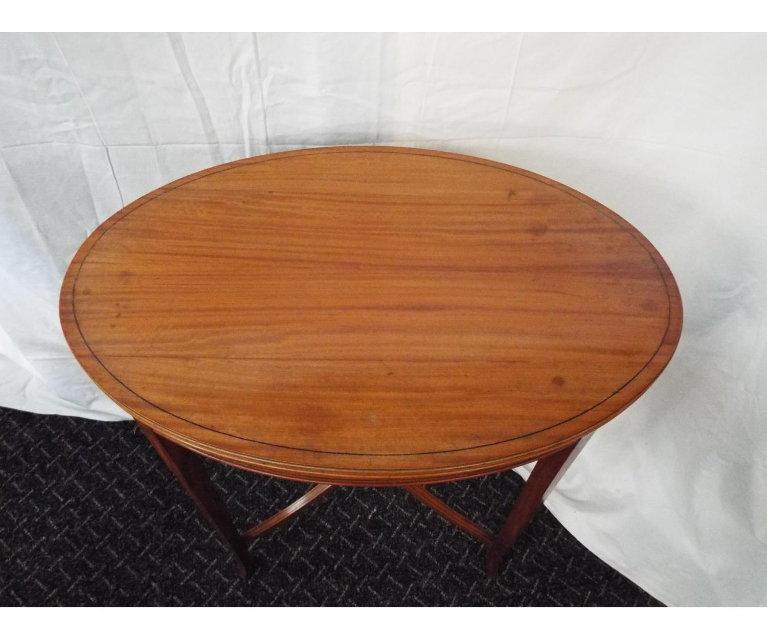 Oval satinwood occasional with ebony inlay and stands on square tappered , Circa 1910