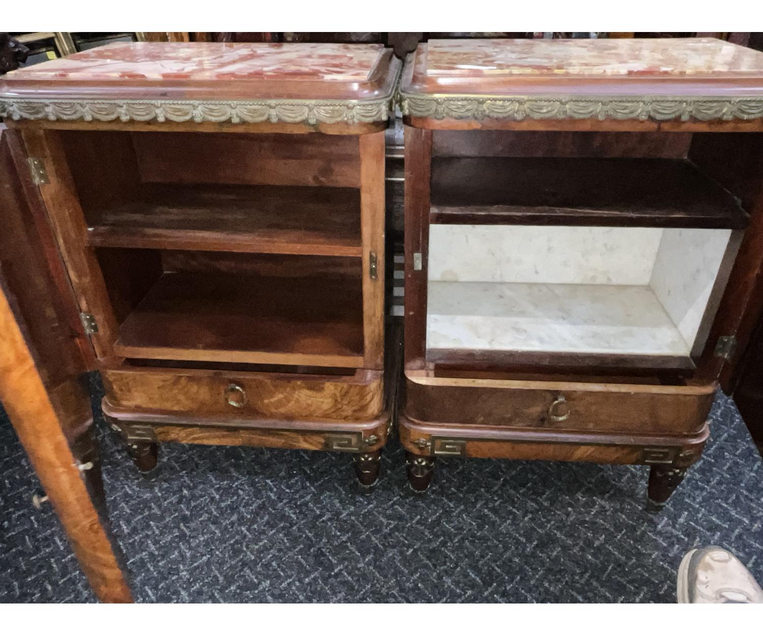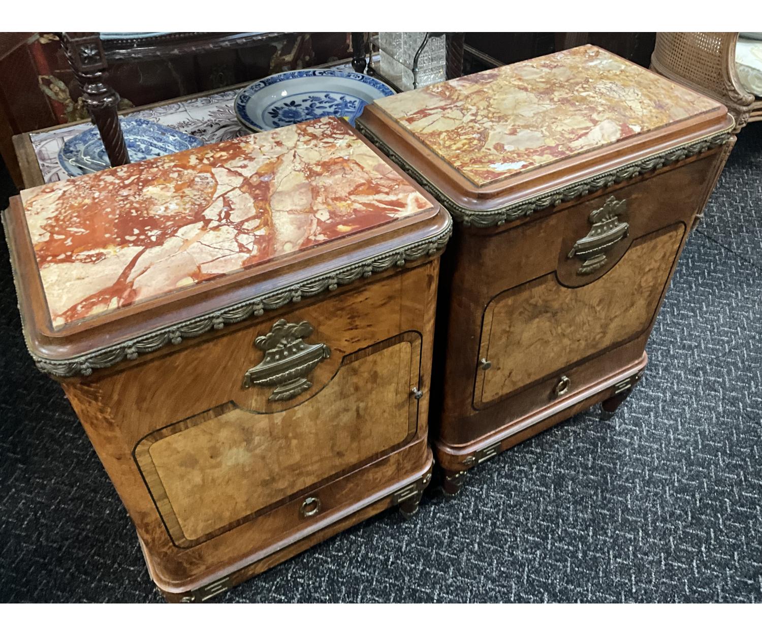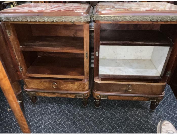 A wonderful pair of French bedside cupboards with marble tops. CA3014 - £1850