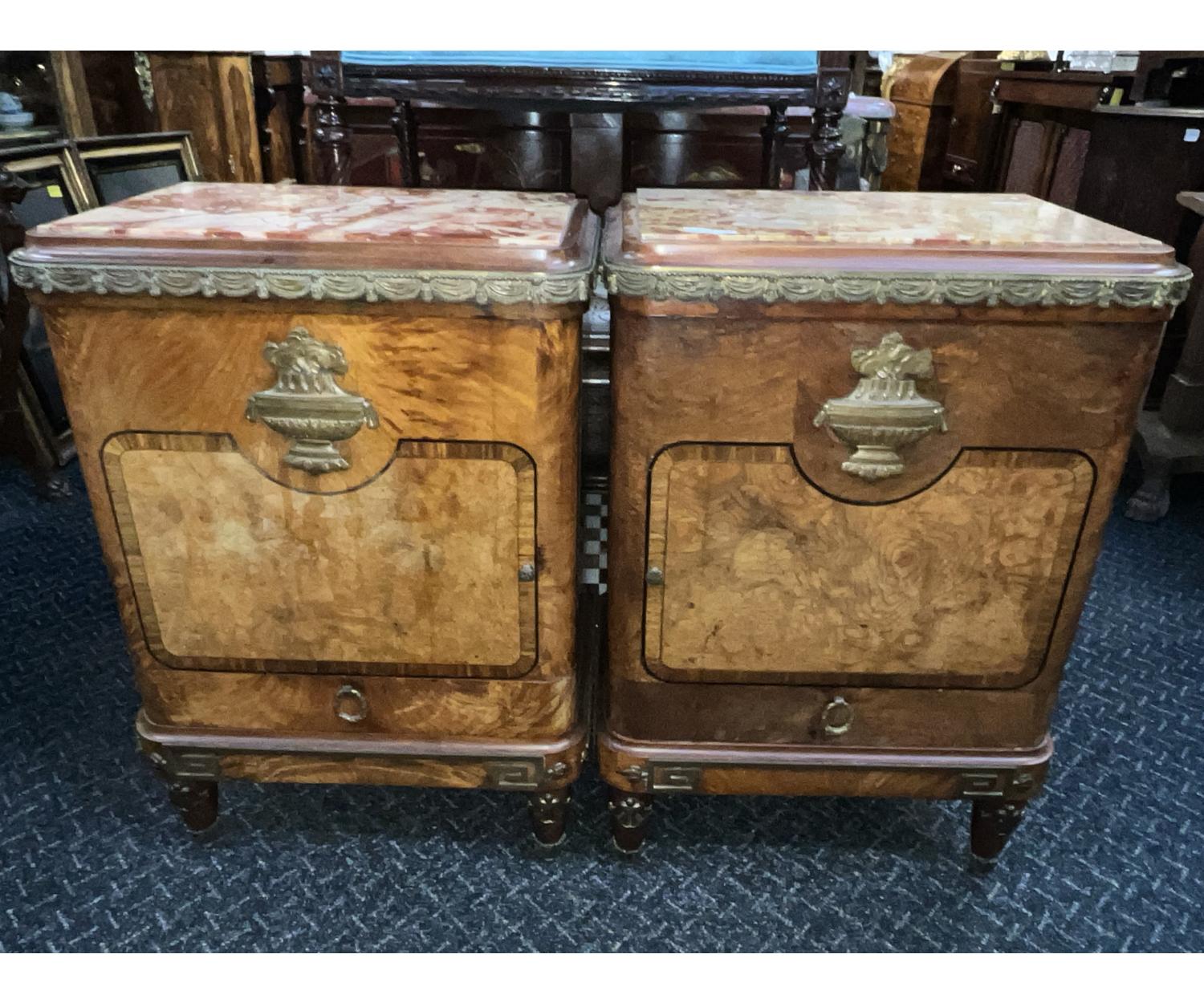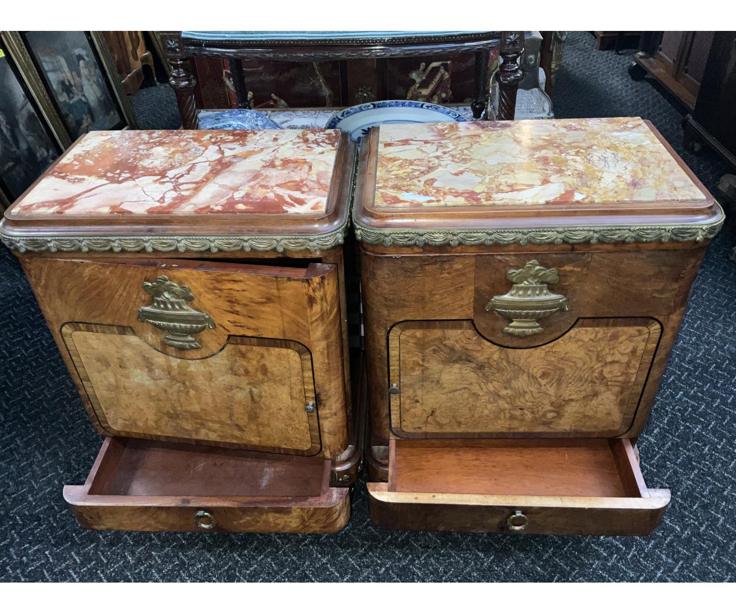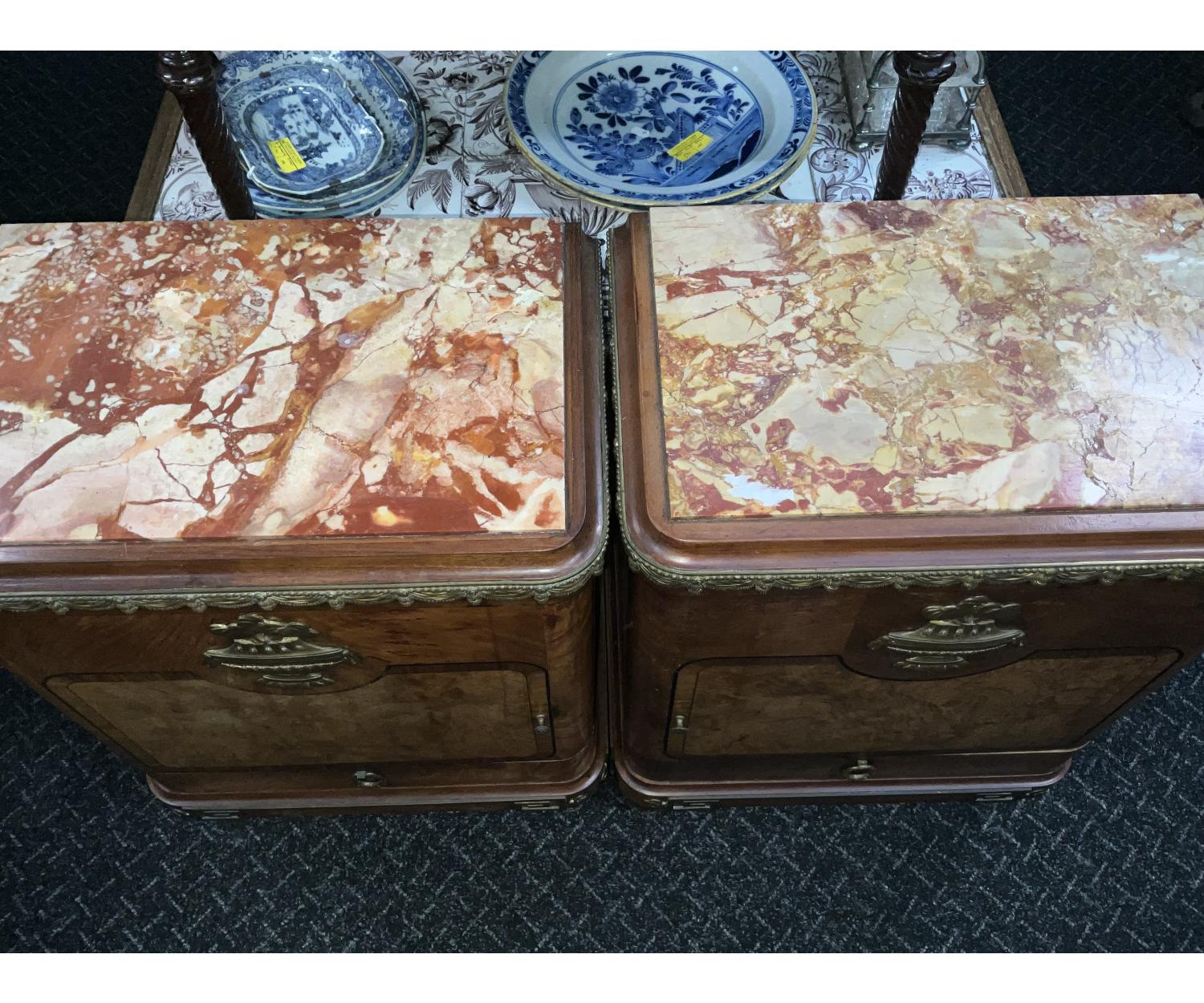 A wonderful pair of French bedside cupboards with marble tops. CA3014 - £1850