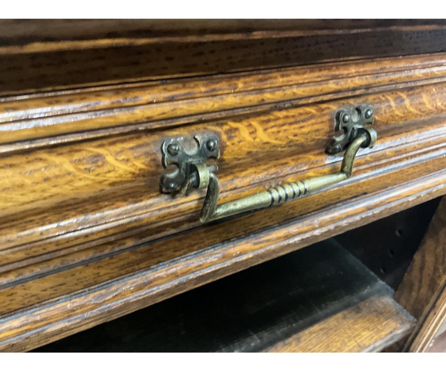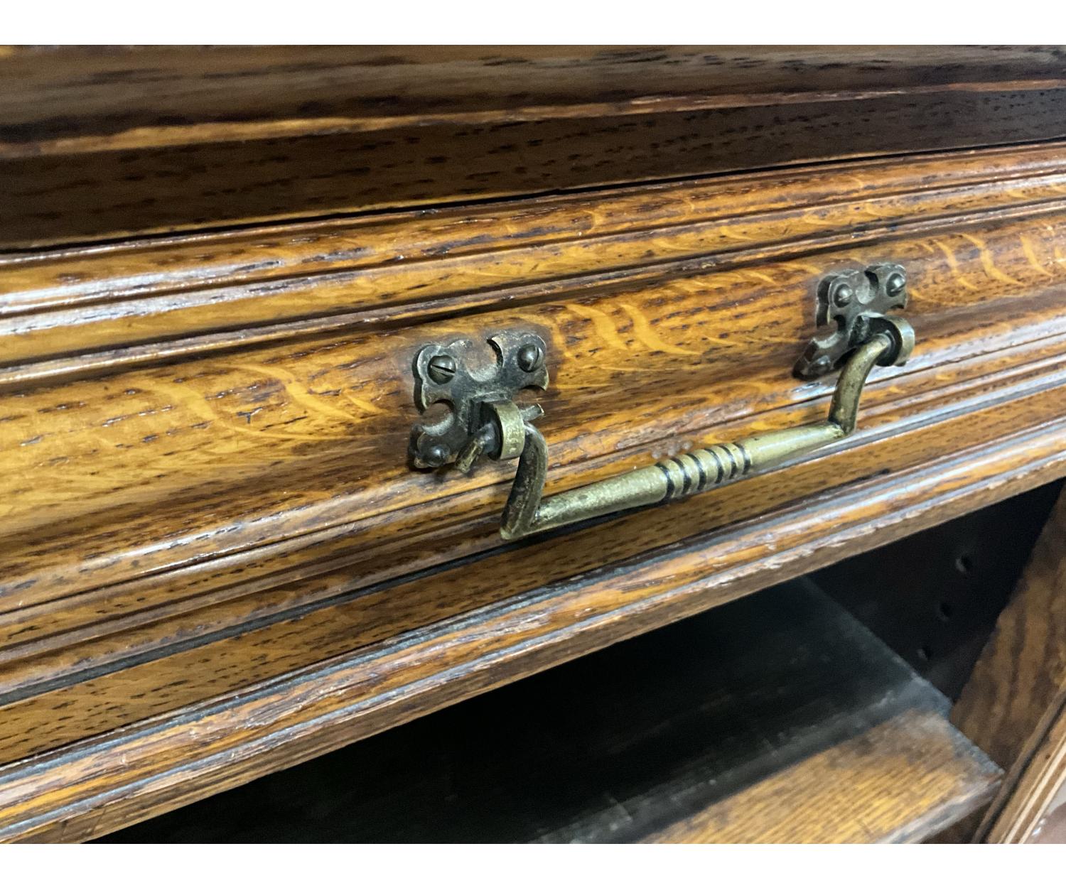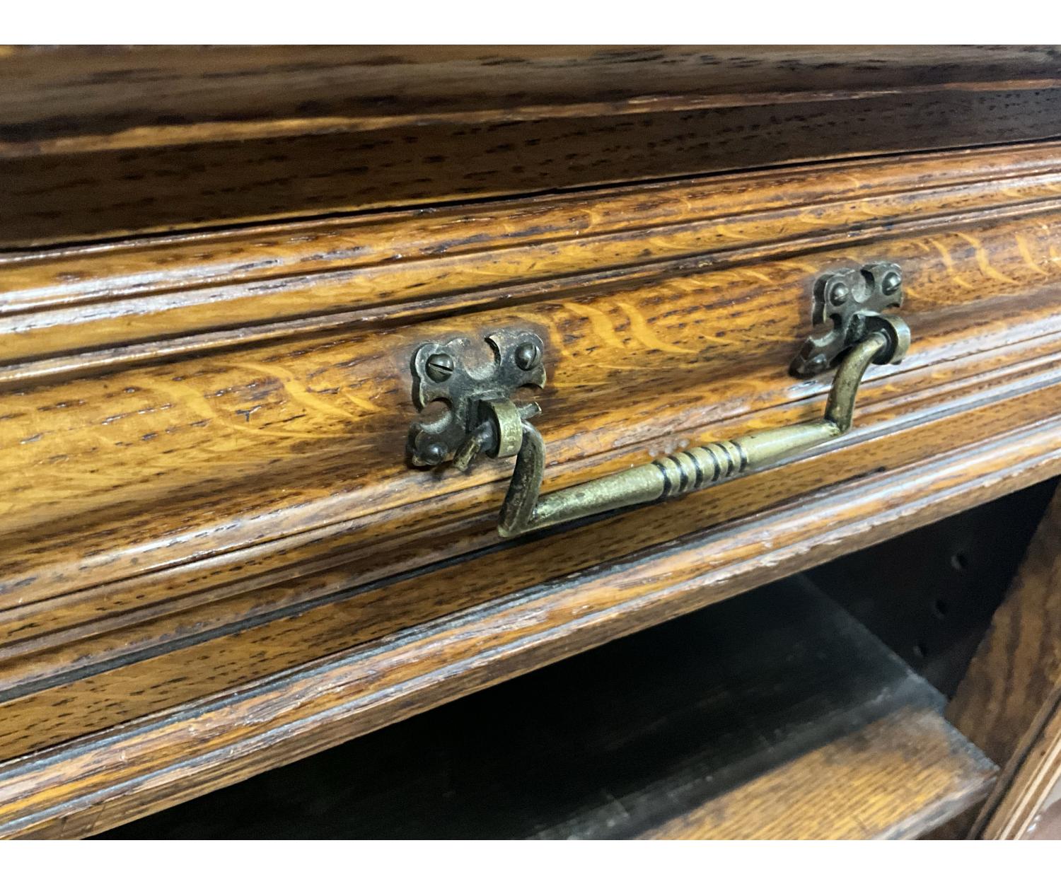Crafted from high-quality oak, this bookcase is built to last. It measures 39cm depth, width 107cm with a height of 141 cm. Don't miss out on the opportunity to own this stunning piece of furniture from the expert furniture makers GILLOW & CO.