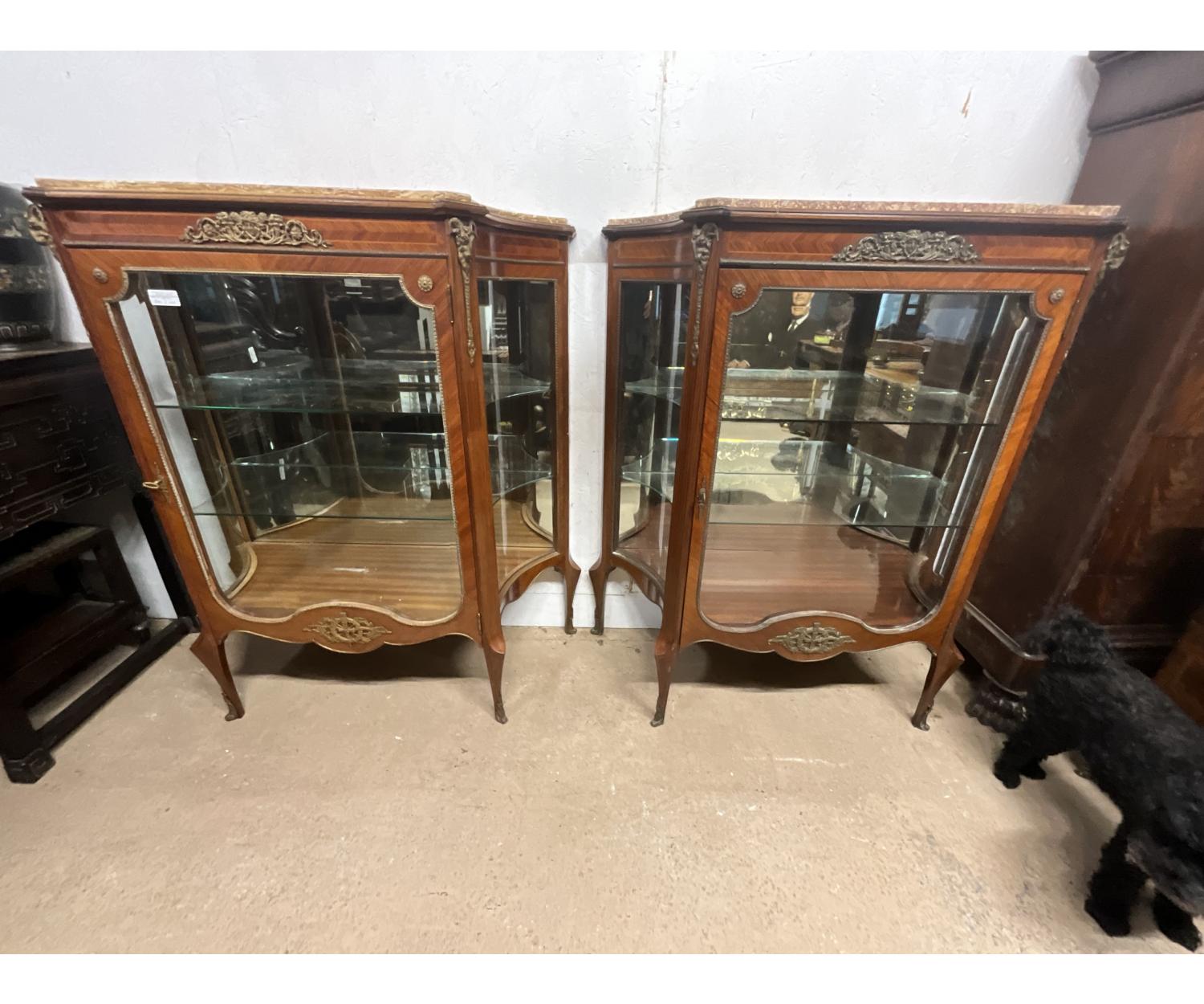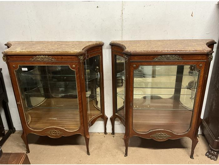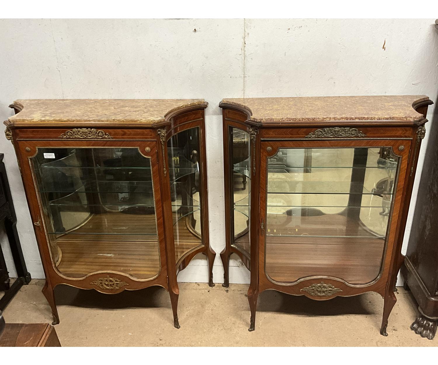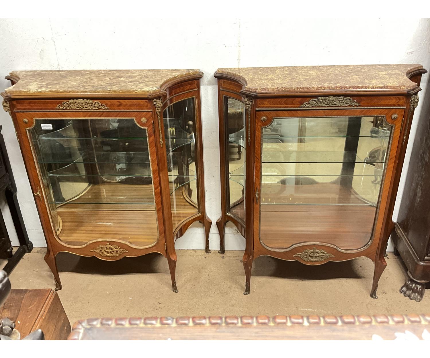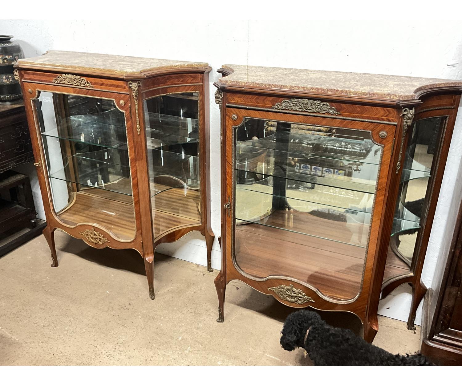 A Pair of French Marble Topped Kingwood Display Cabinets - £4750