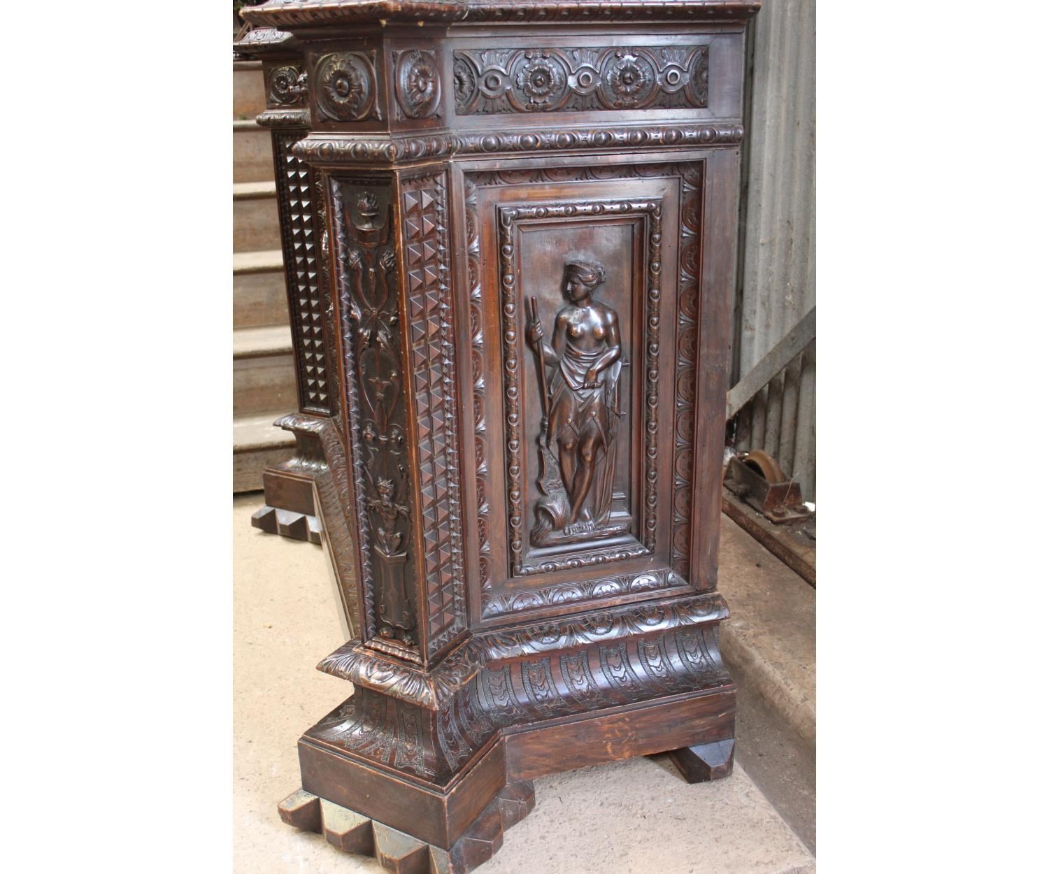 A large Italian Carved Walnut Cabinet. Circa 1880