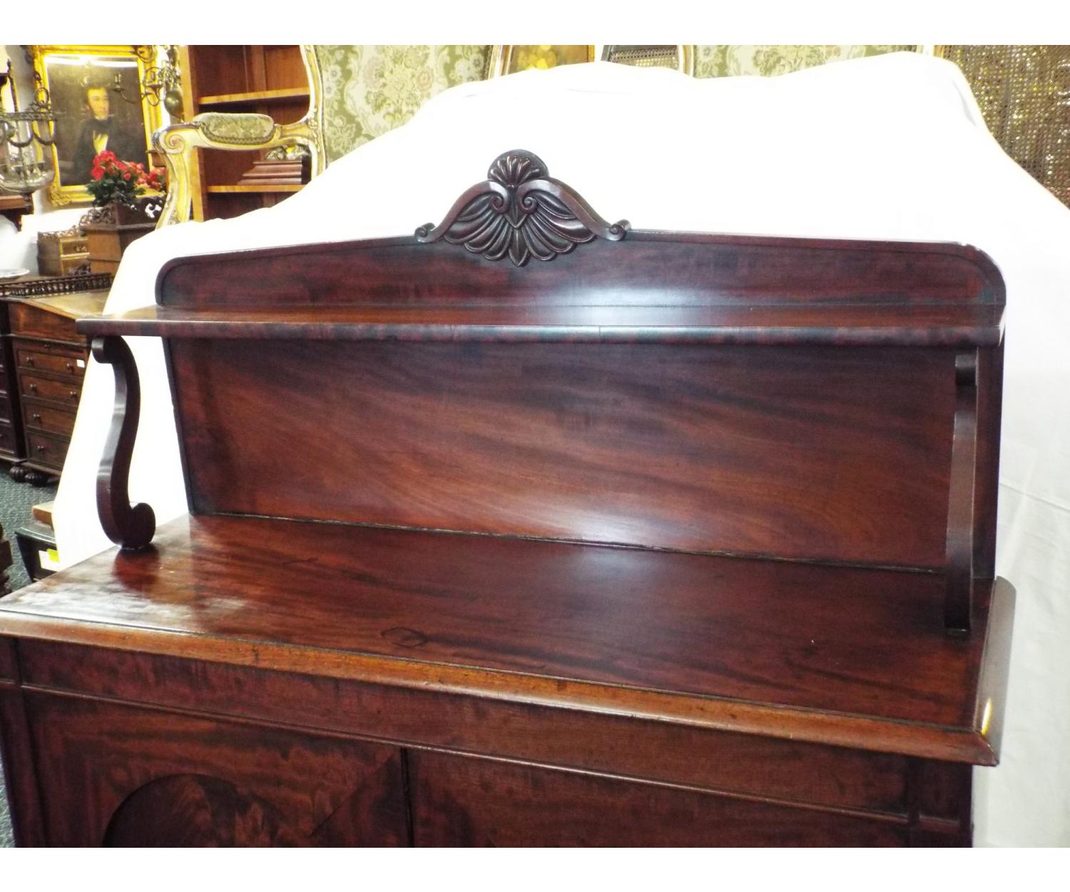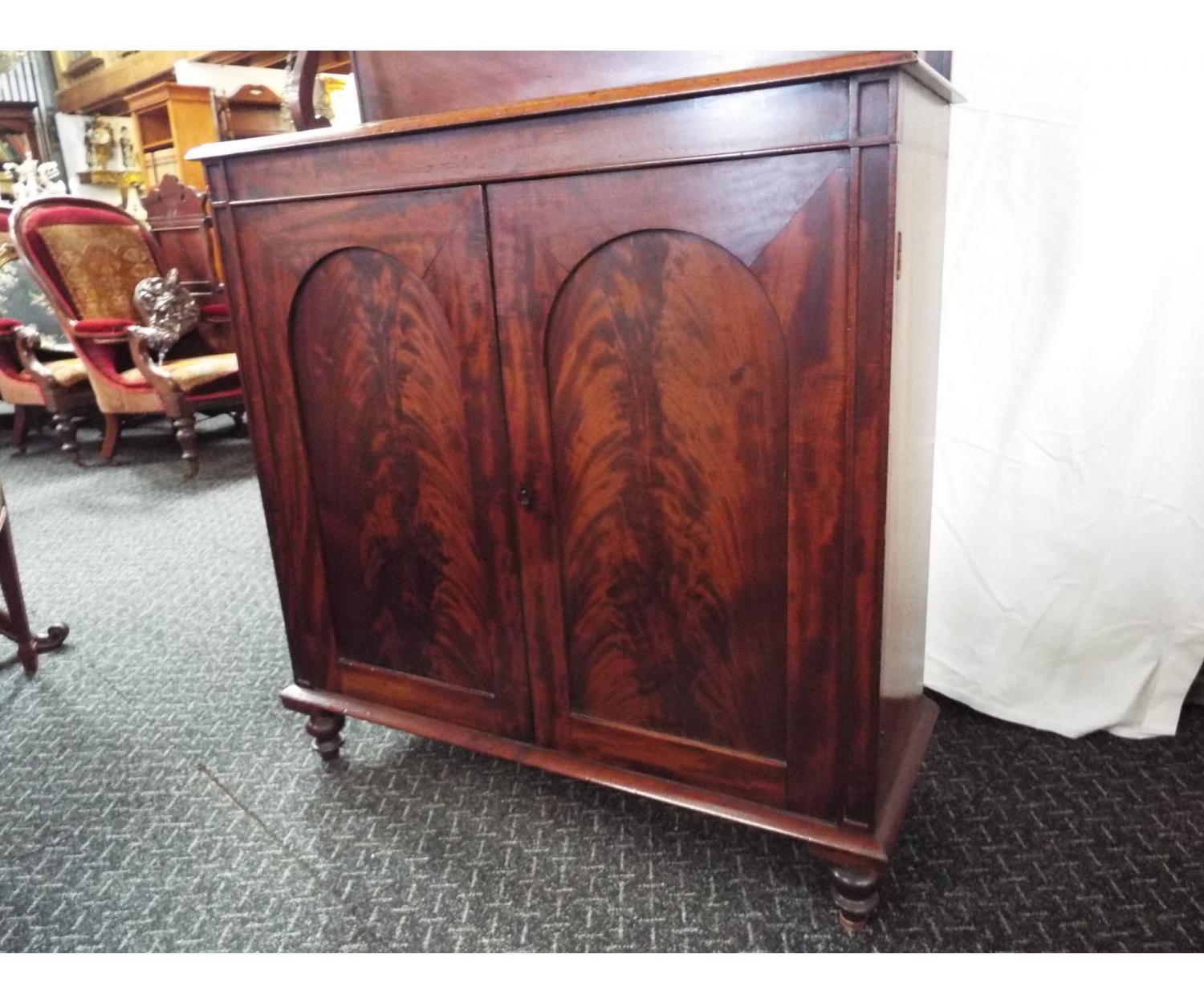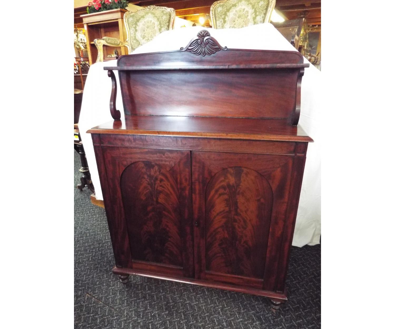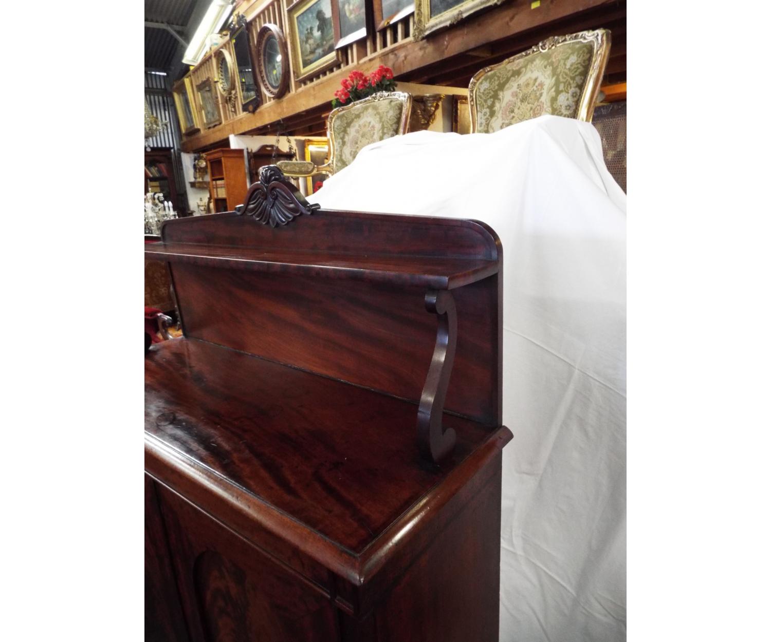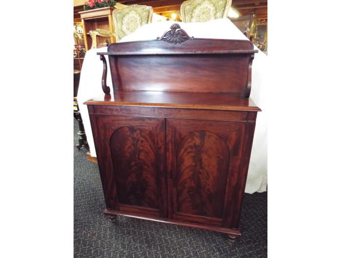 Mahogany Chiffonier with shelved back, two door cupboard with one adjustable shelf. Circa 1860