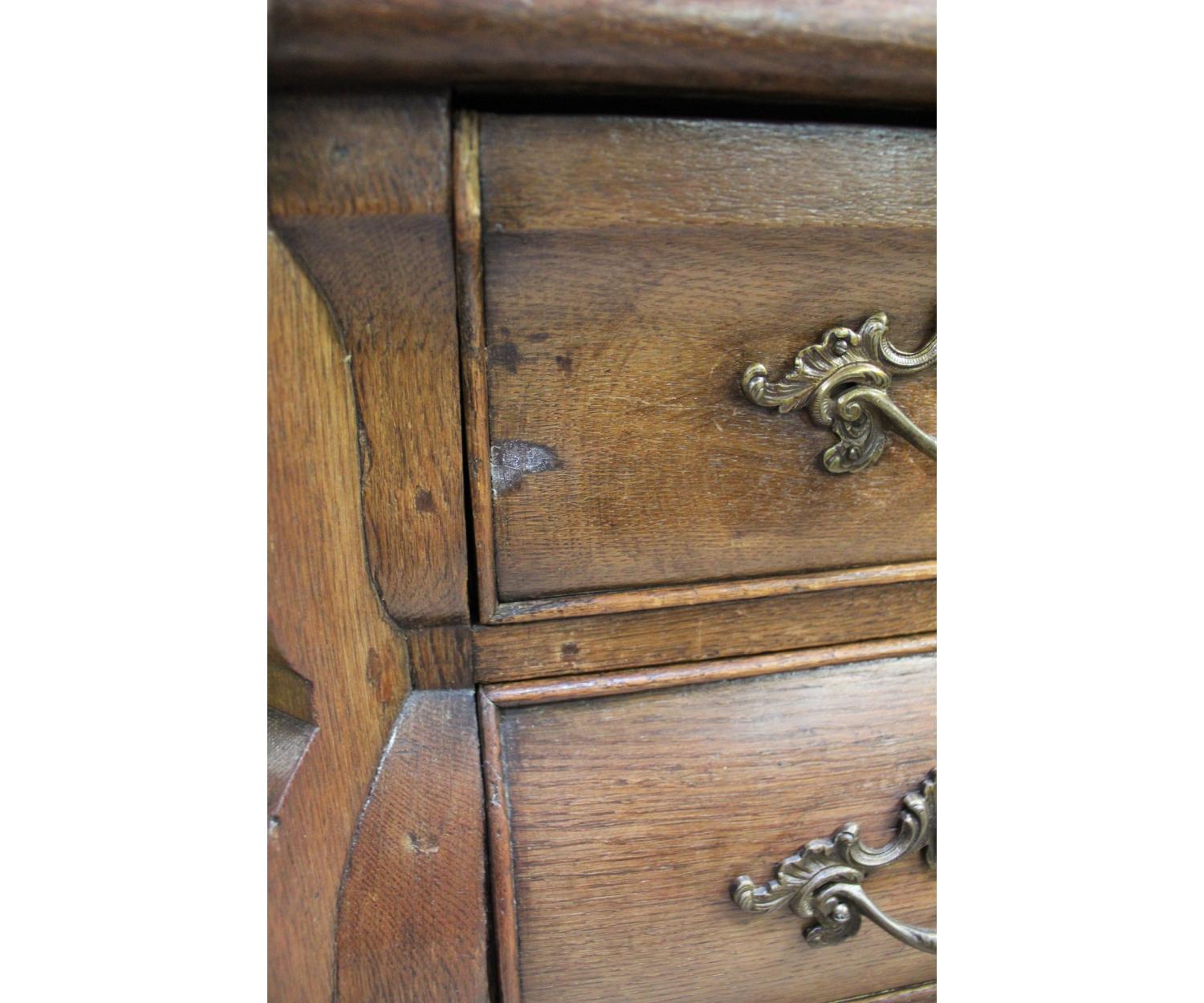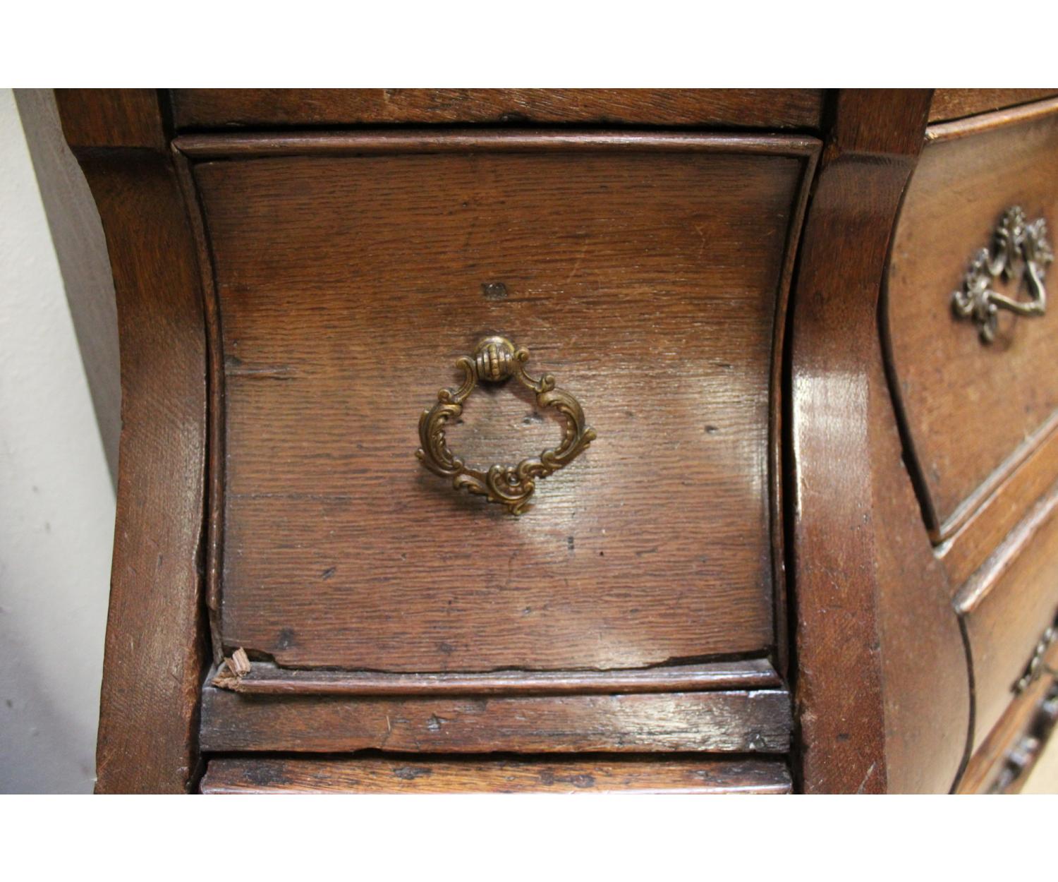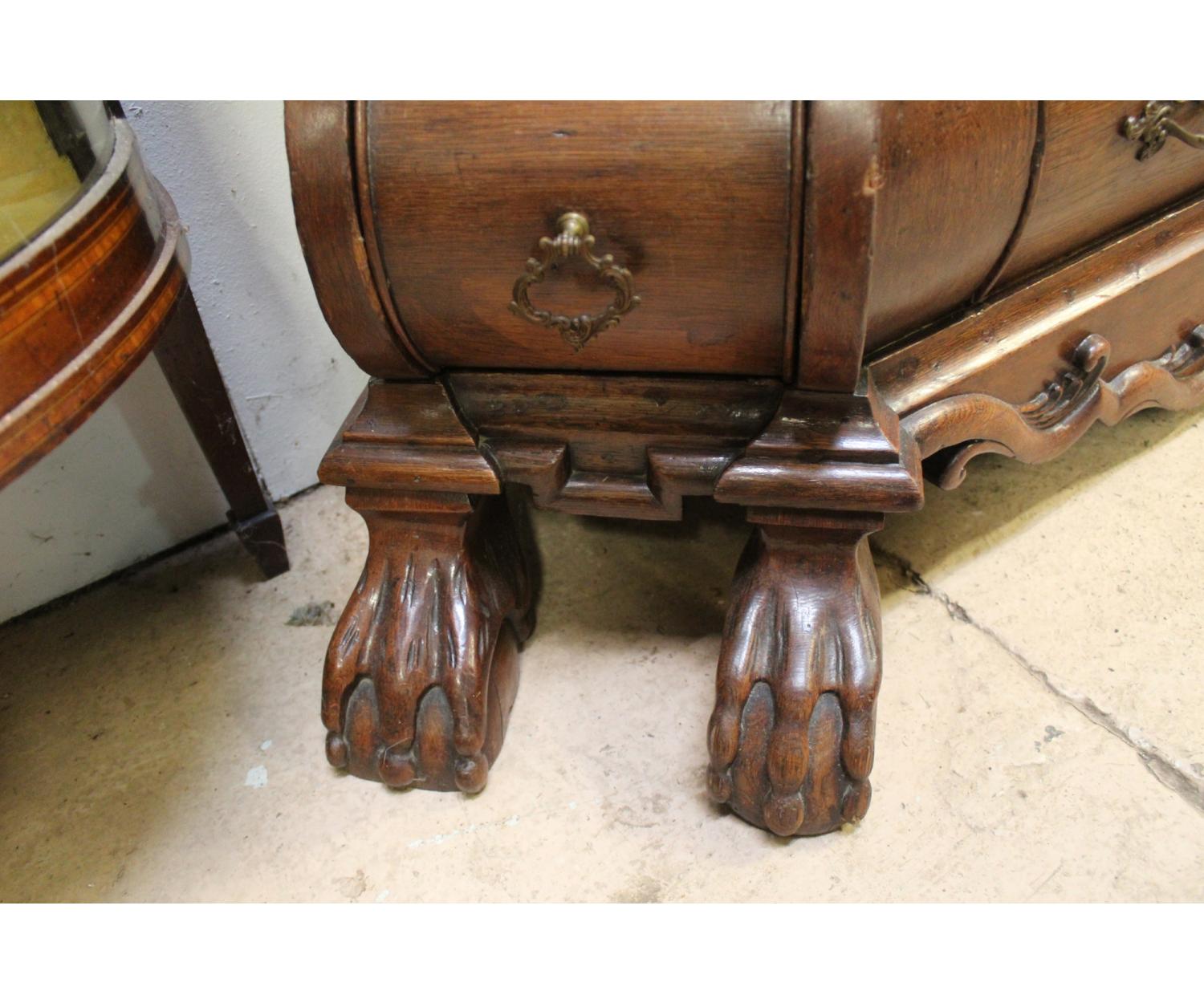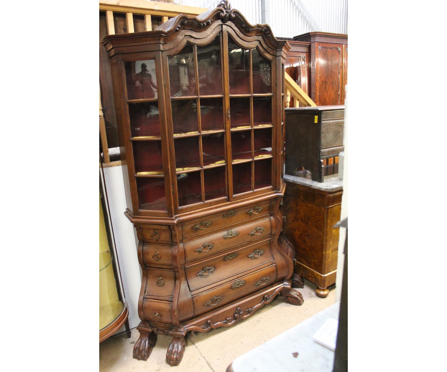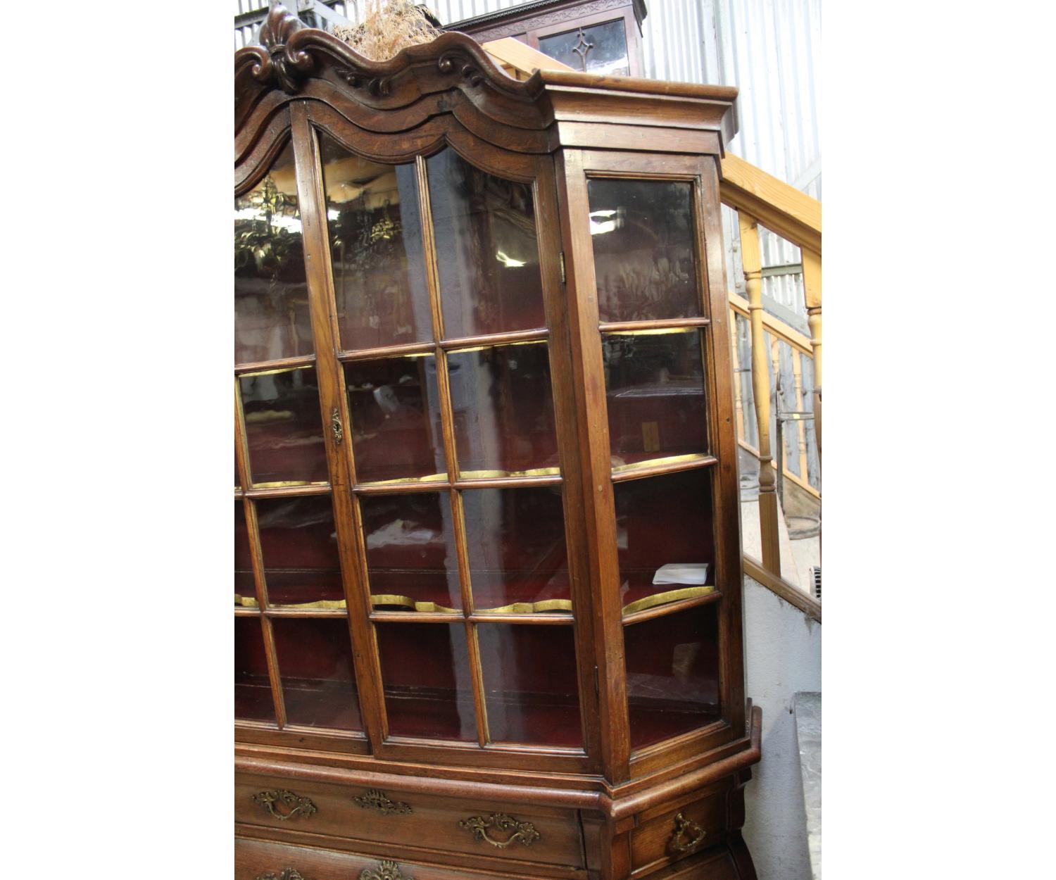 Dutch Oak Vitrine. Has a panelled glazed top, base has four graduated drawers flanked by four graduated corner drawers. Stands on paw feet. In need of slight restoration. Circa 1780