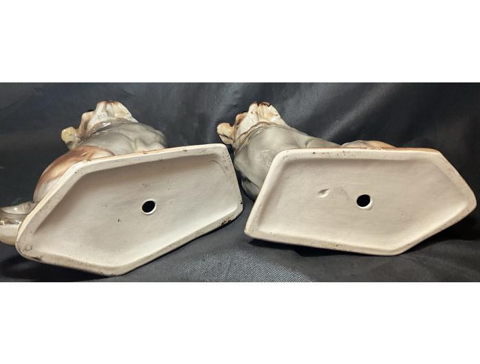 The beige and cream colour of these figurines makes them an excellent addition to any decorative pottery collection and are beautifully enhanced with gilt painted decoration. Whether you're a fan of pugs or simply appreciate the artistry of ceramic figurines, this pair is a great addition to any collection.