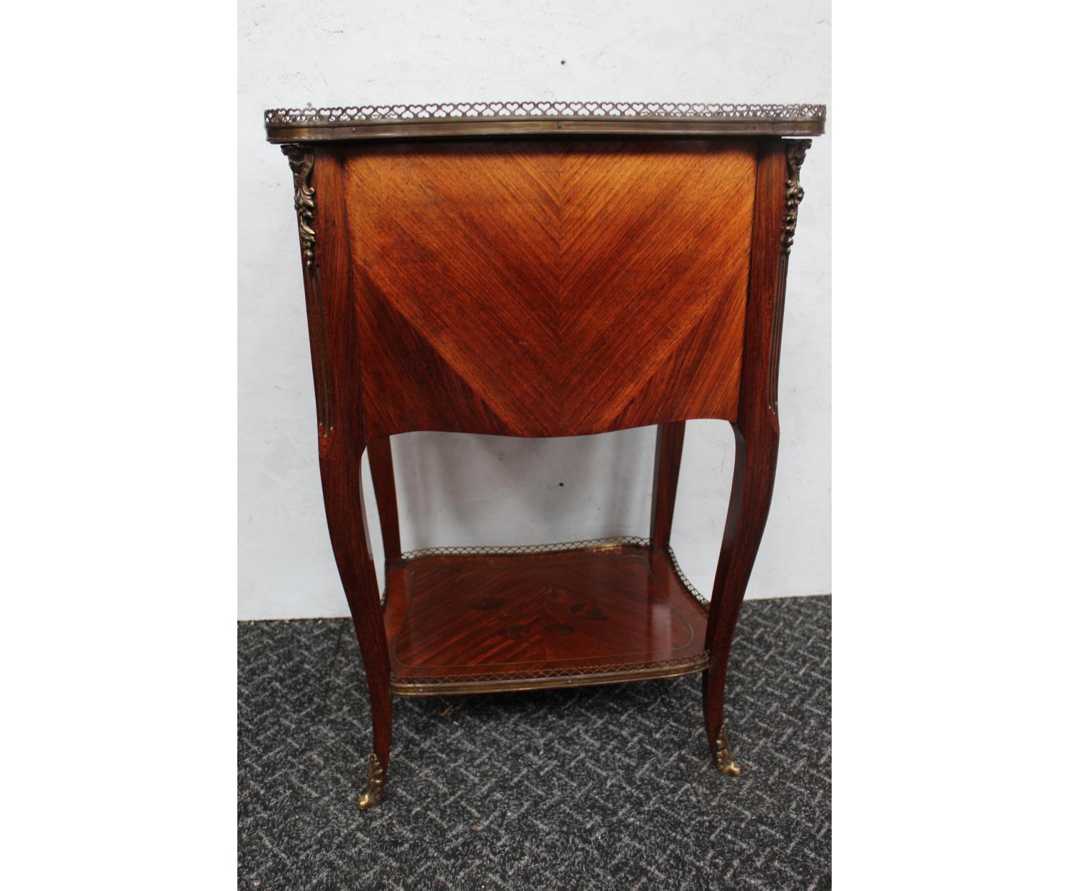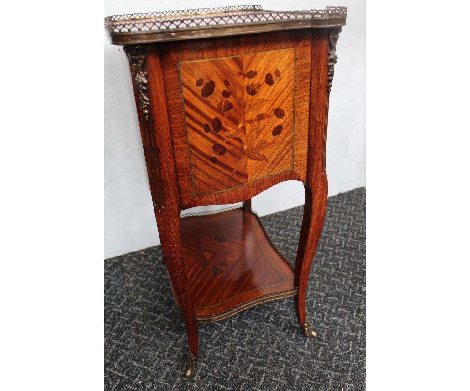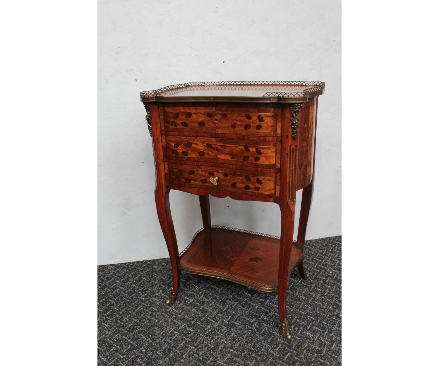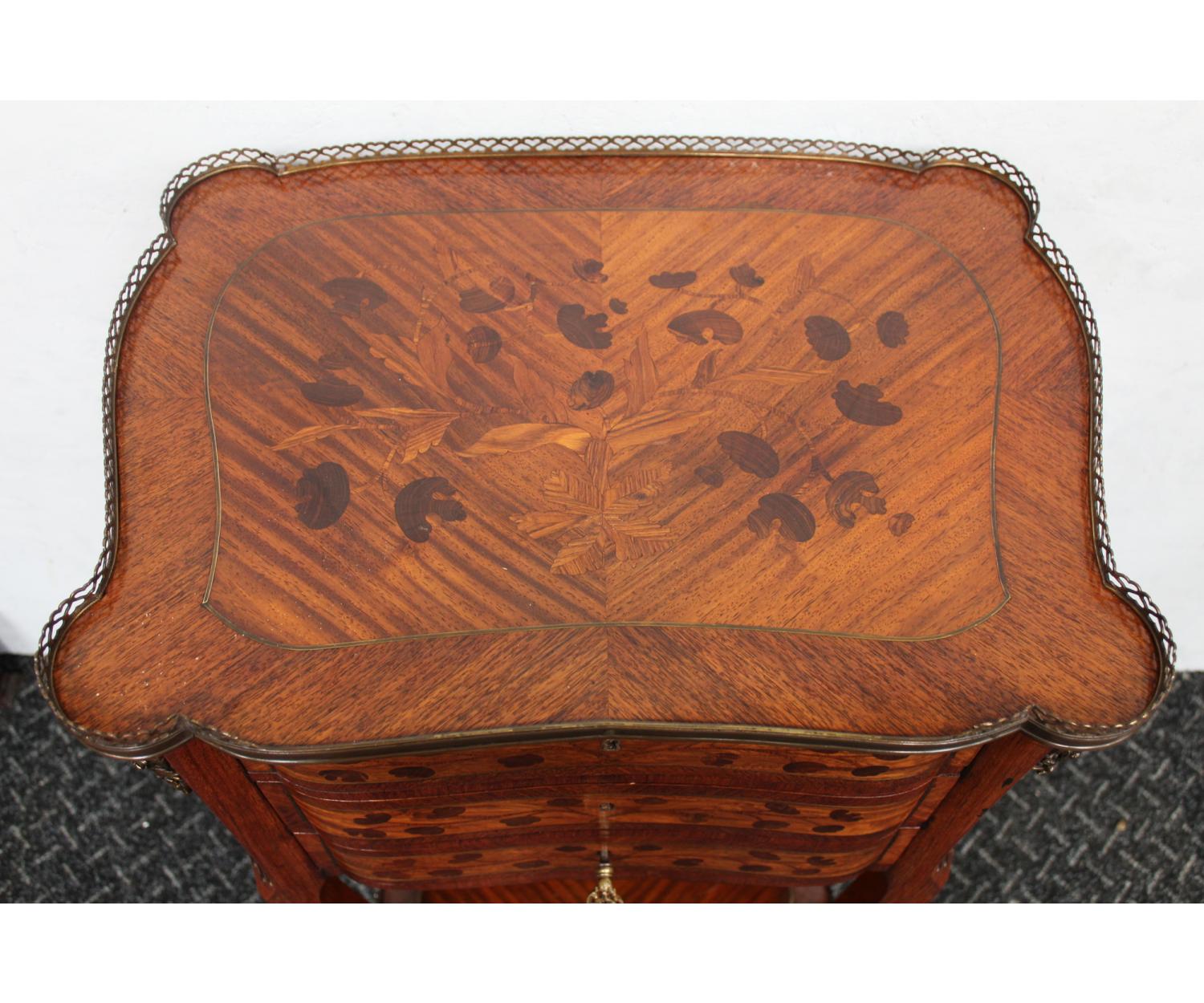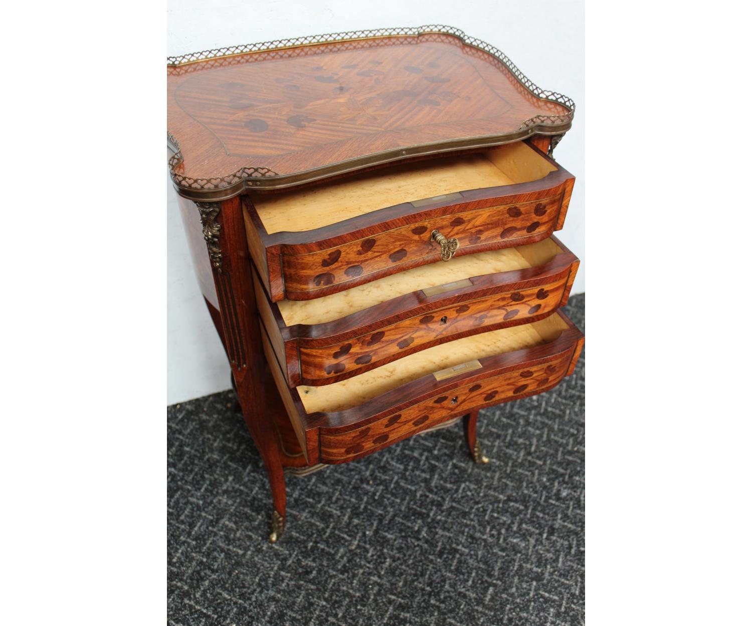 A very good quality Kingwood Chest decoratively inlaid and has brass galleries to the top and under shelf. Circa 1900