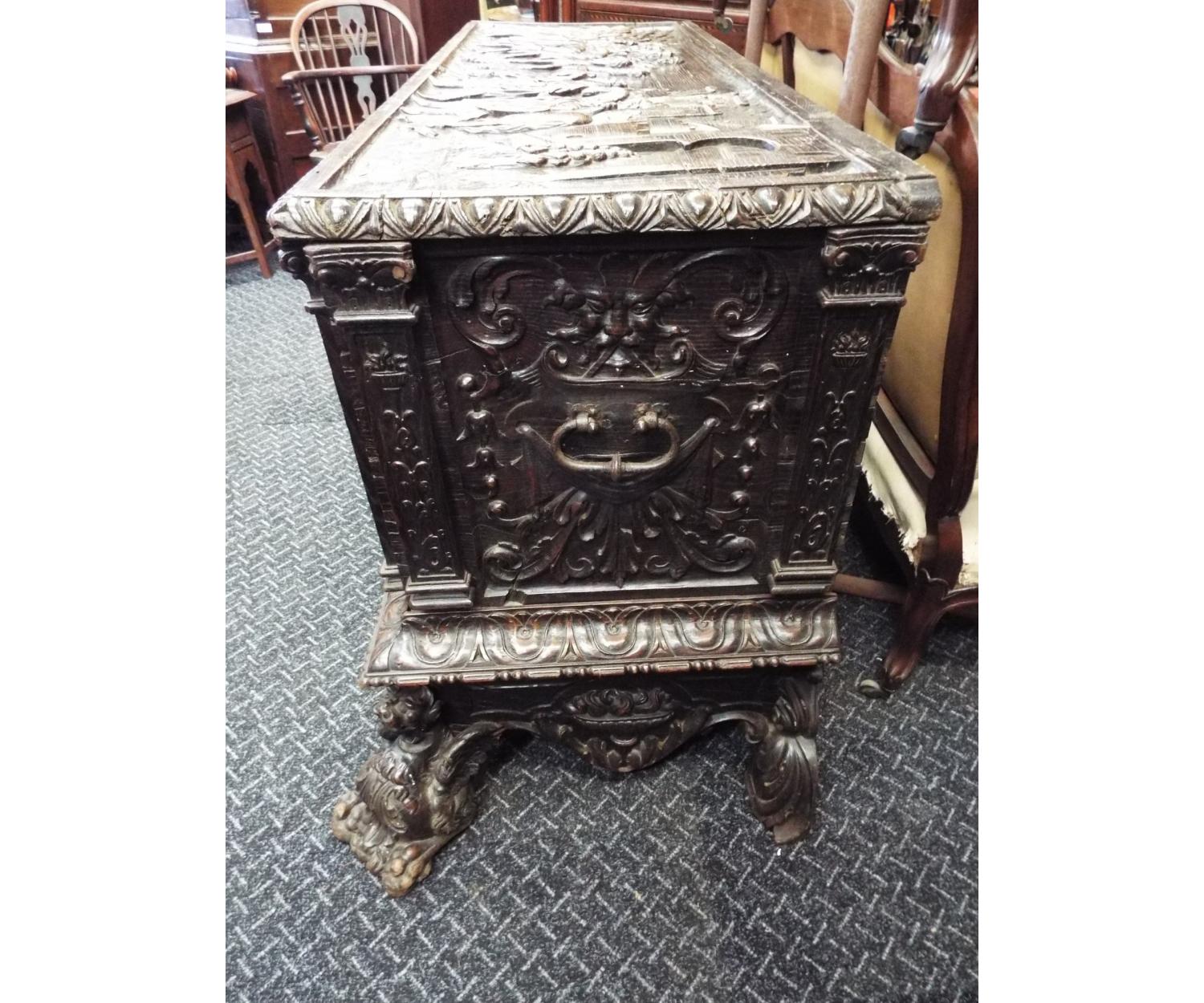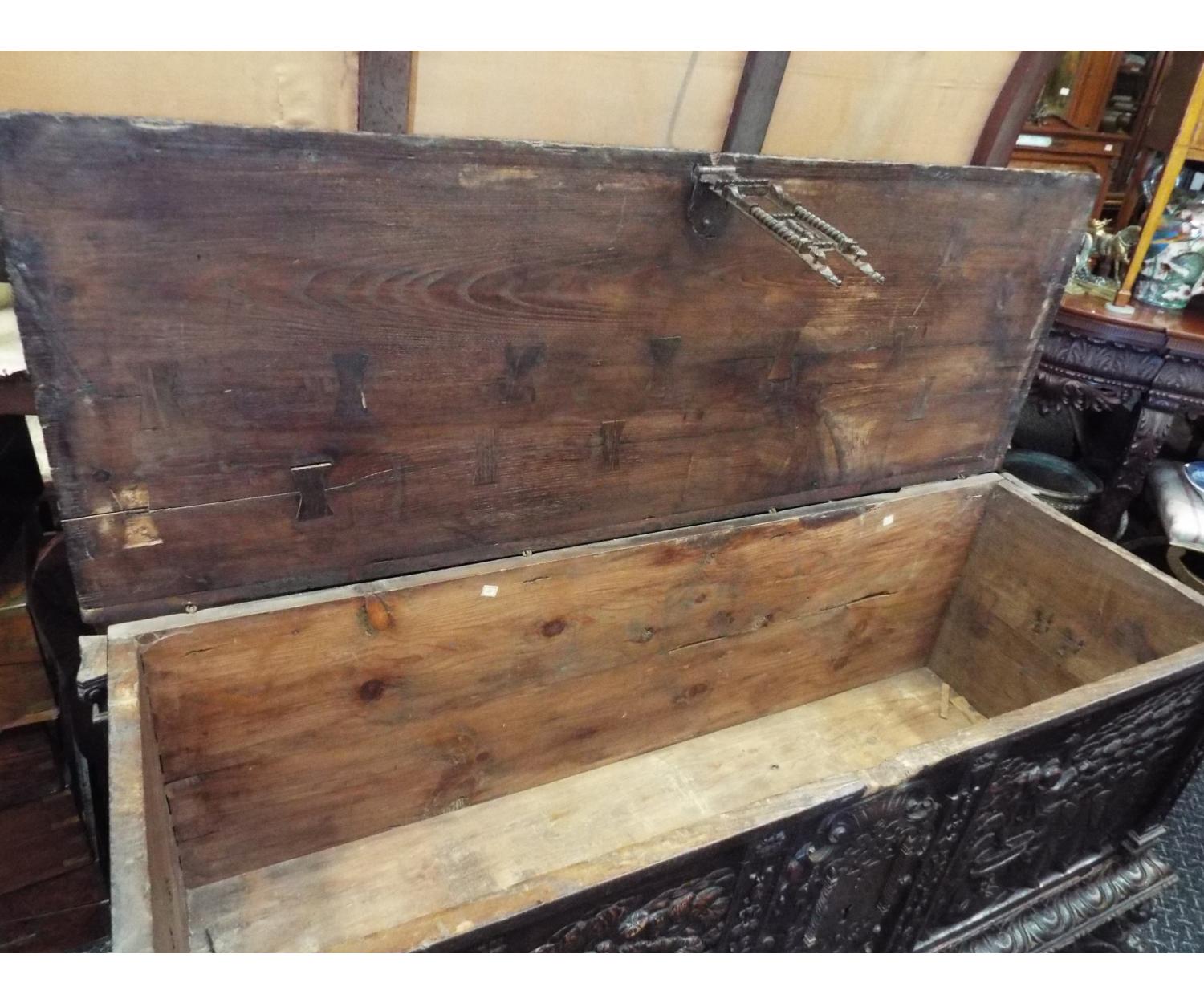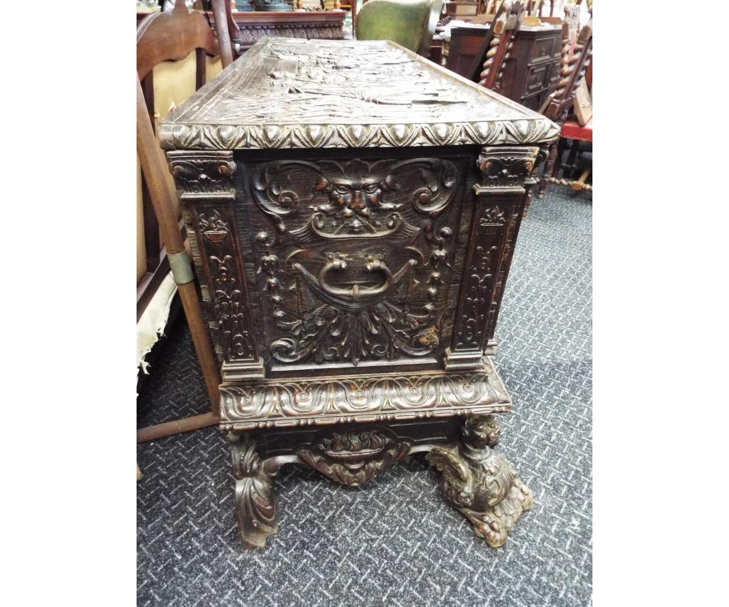 A carved chestnut cassonne. 19th century in a 17th century style. French