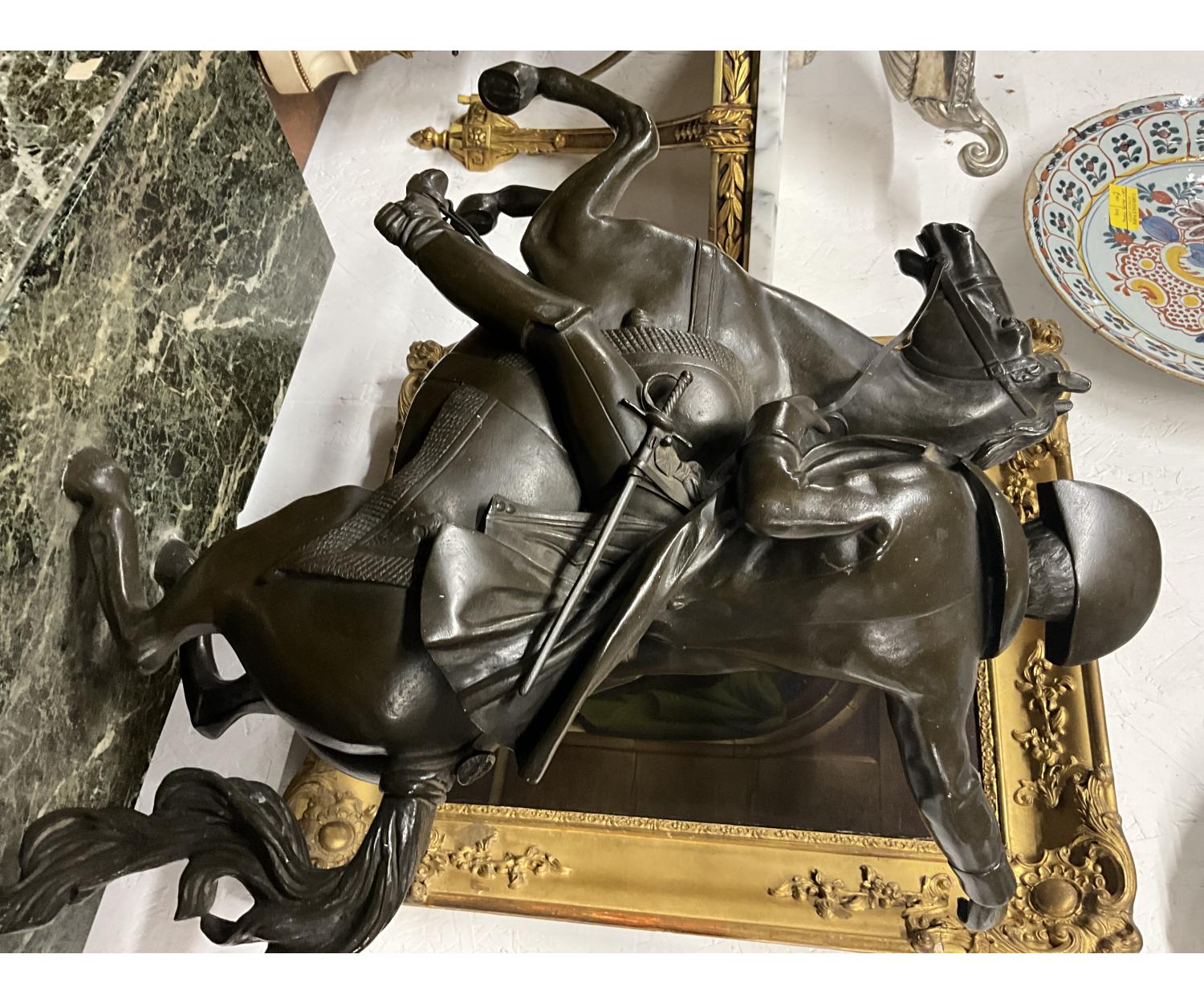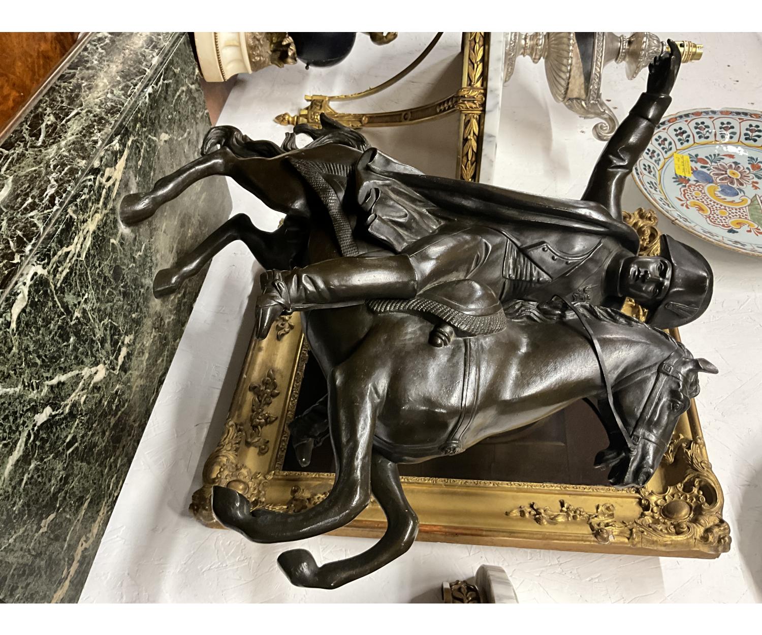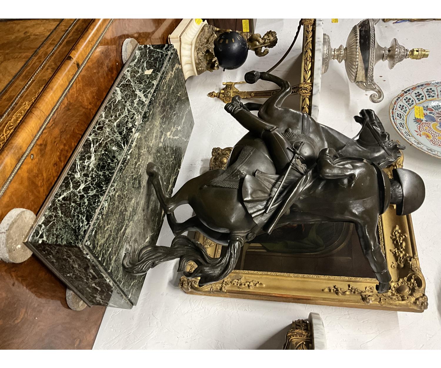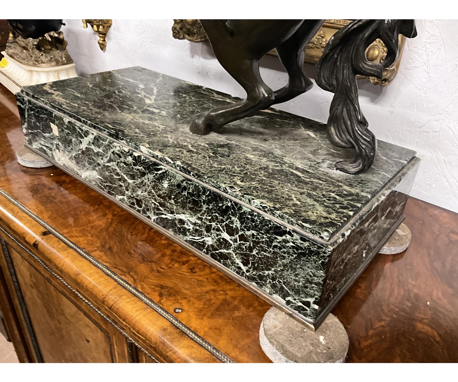 The size of this piece is large, measuring approximately [height 66 cm width 56 cm depth 25 cm] and he's heavy!. The materials utilized in the creation of this sculpture are bronze and marble, adding an element of elegance and durability to the piece. Height 66 cm width 56 cm depth 25 cm.