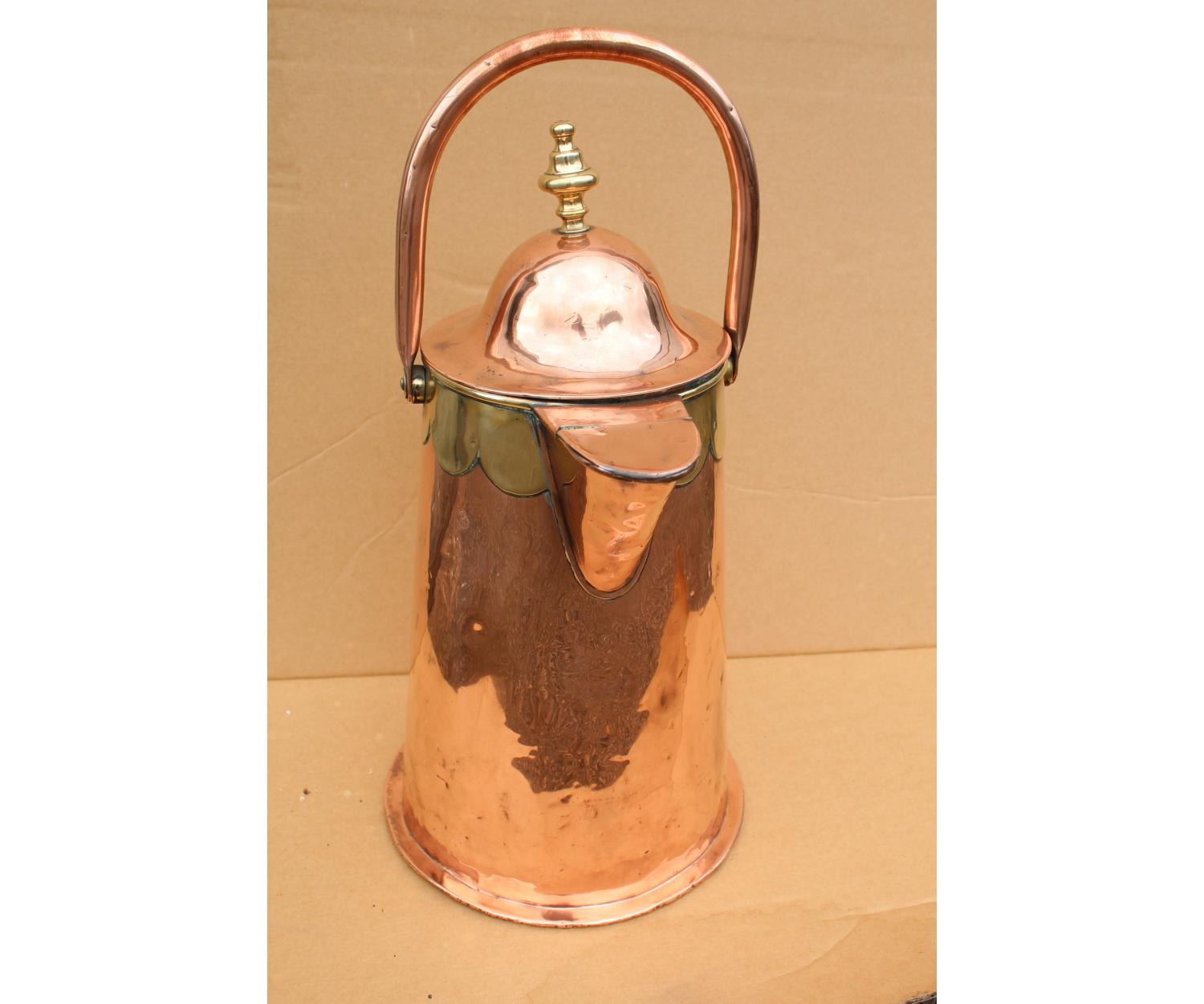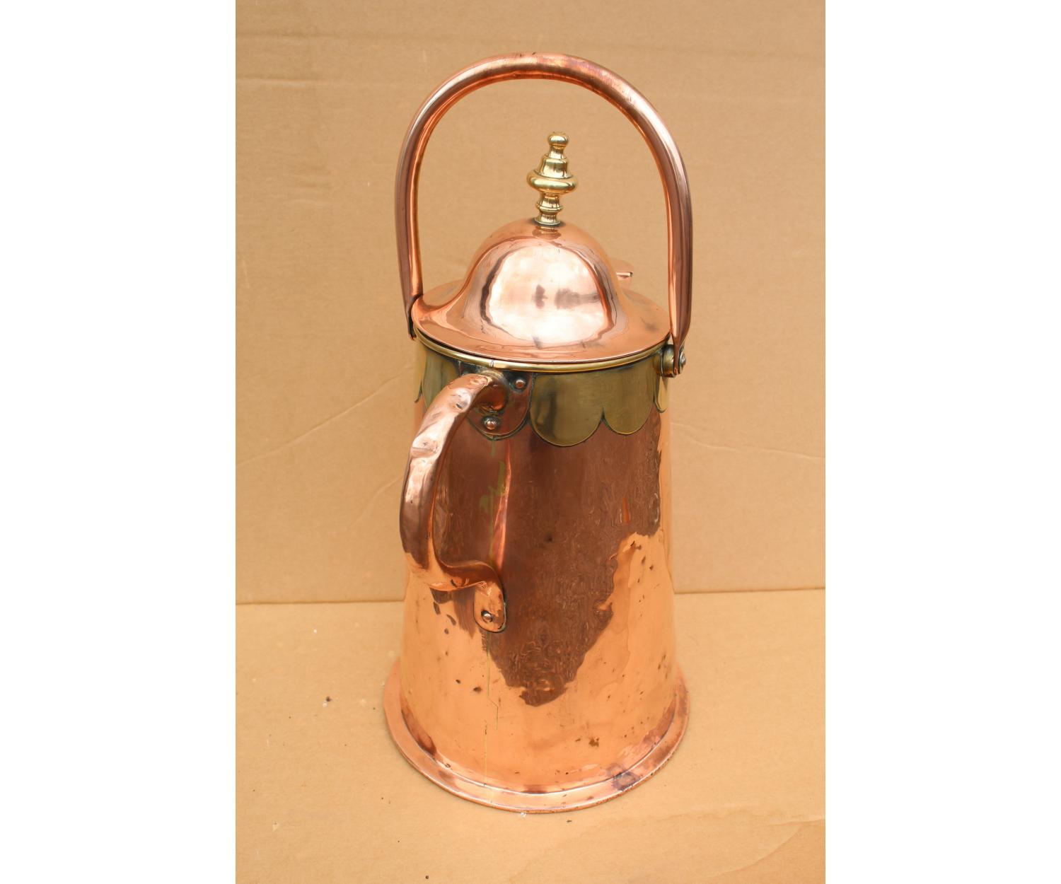 Large Cooper Water Jug with brass decoration. Circa 1860