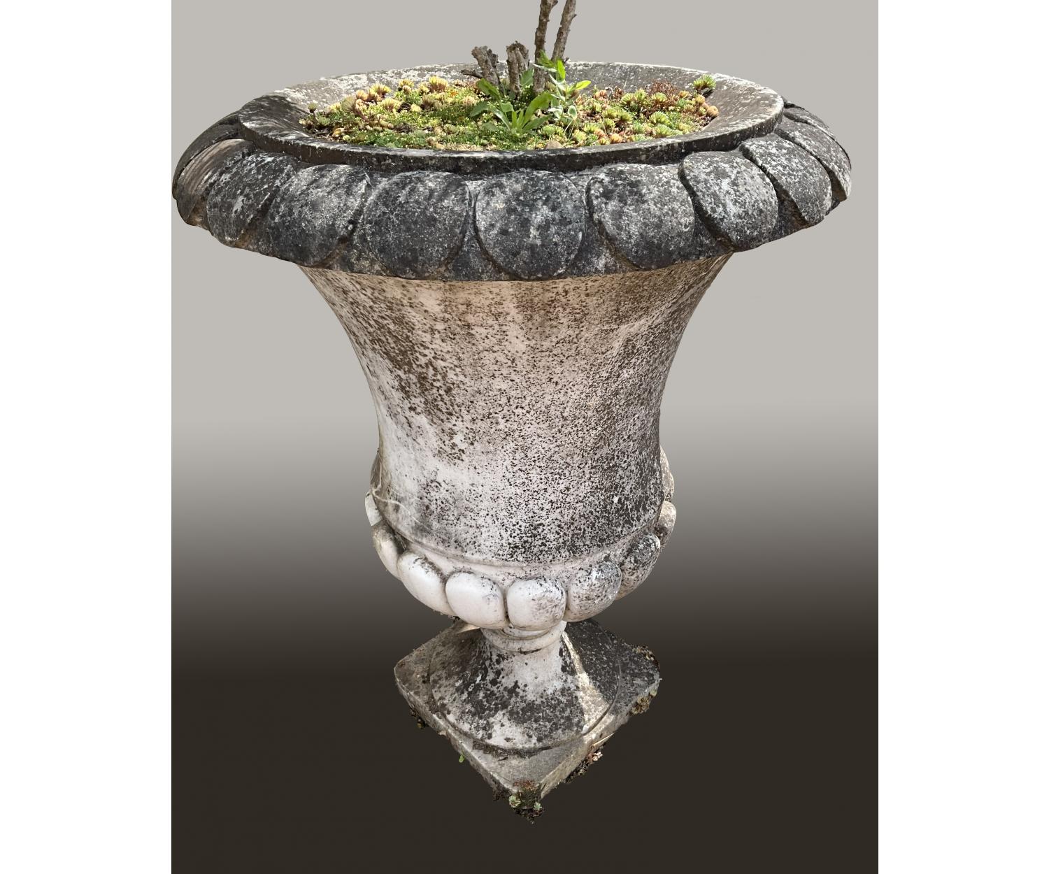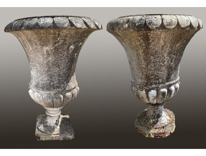 A Near Pair of Large Carved Marble Garden Urns. c.1900 - £4250