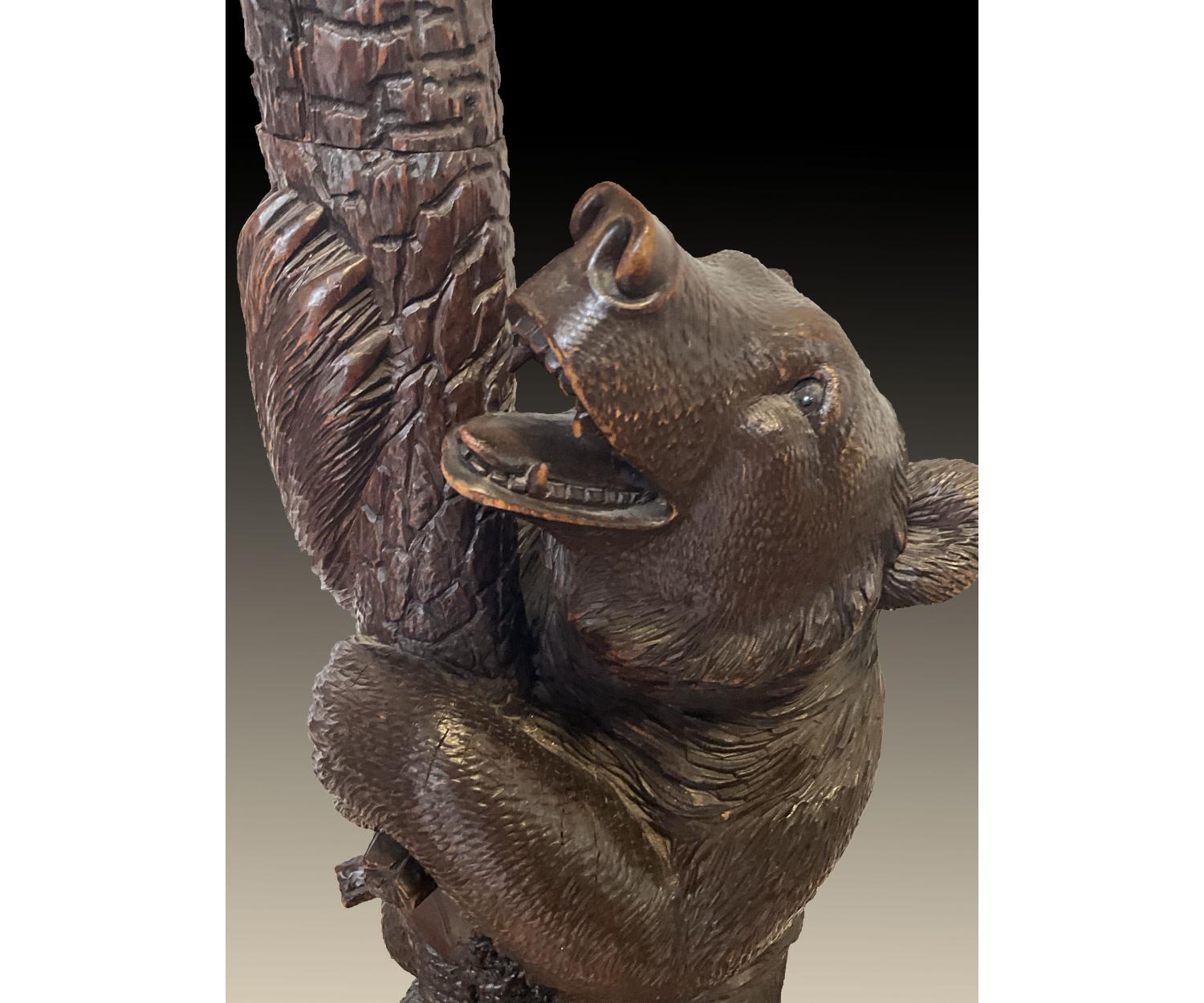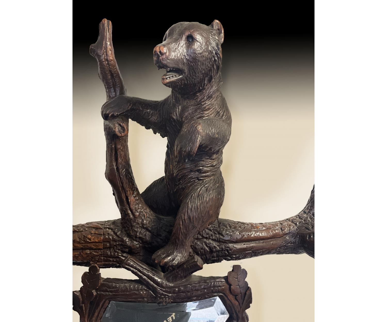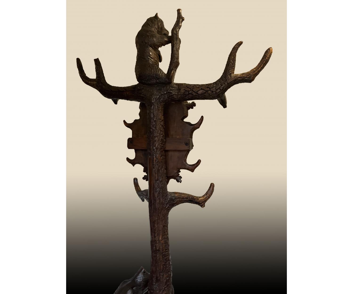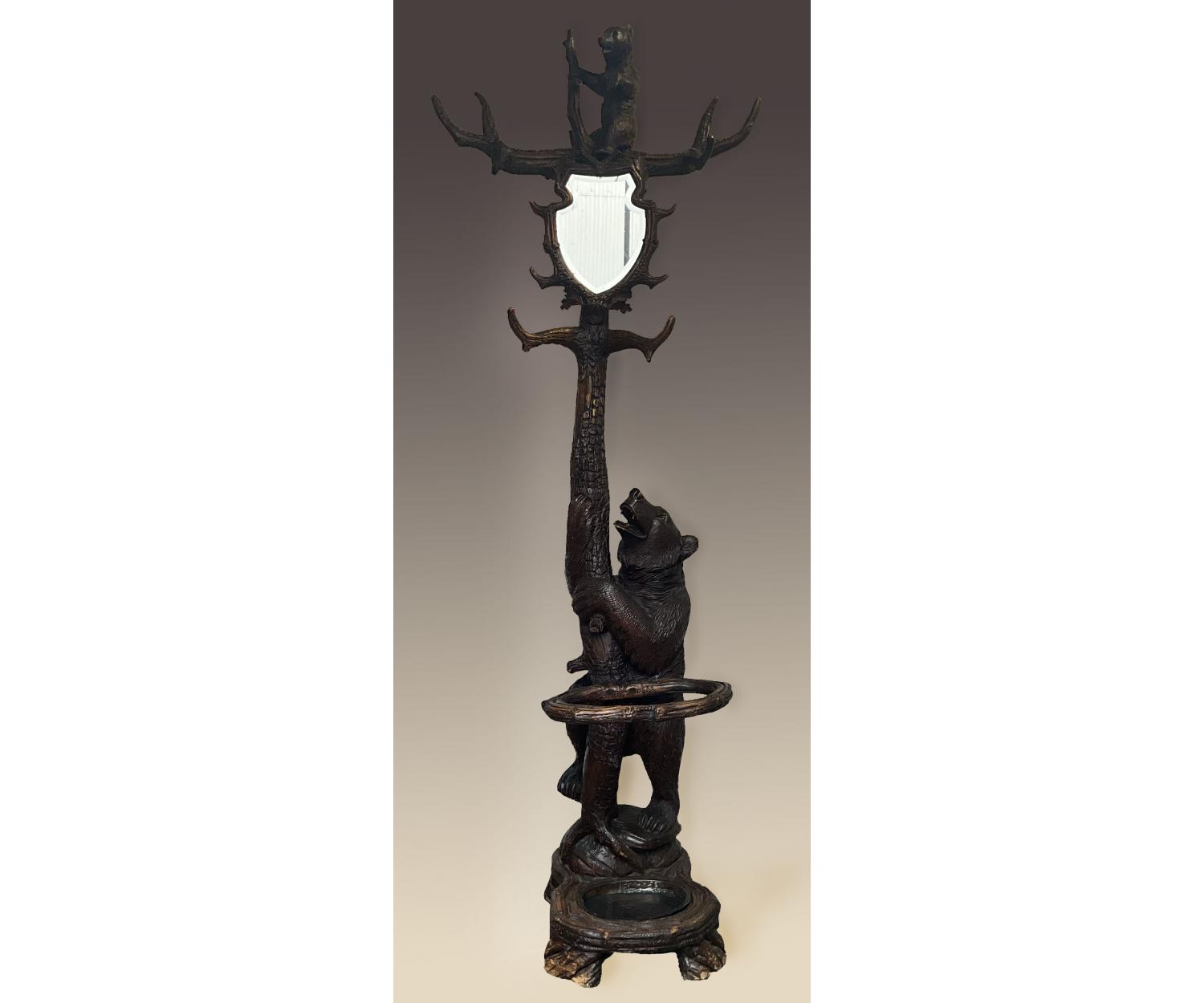 The antique style and period (circa 1870) of this hall stand is sure to add a touch of character to any room, this black forest carved wood Hall stand is the perfect choice.