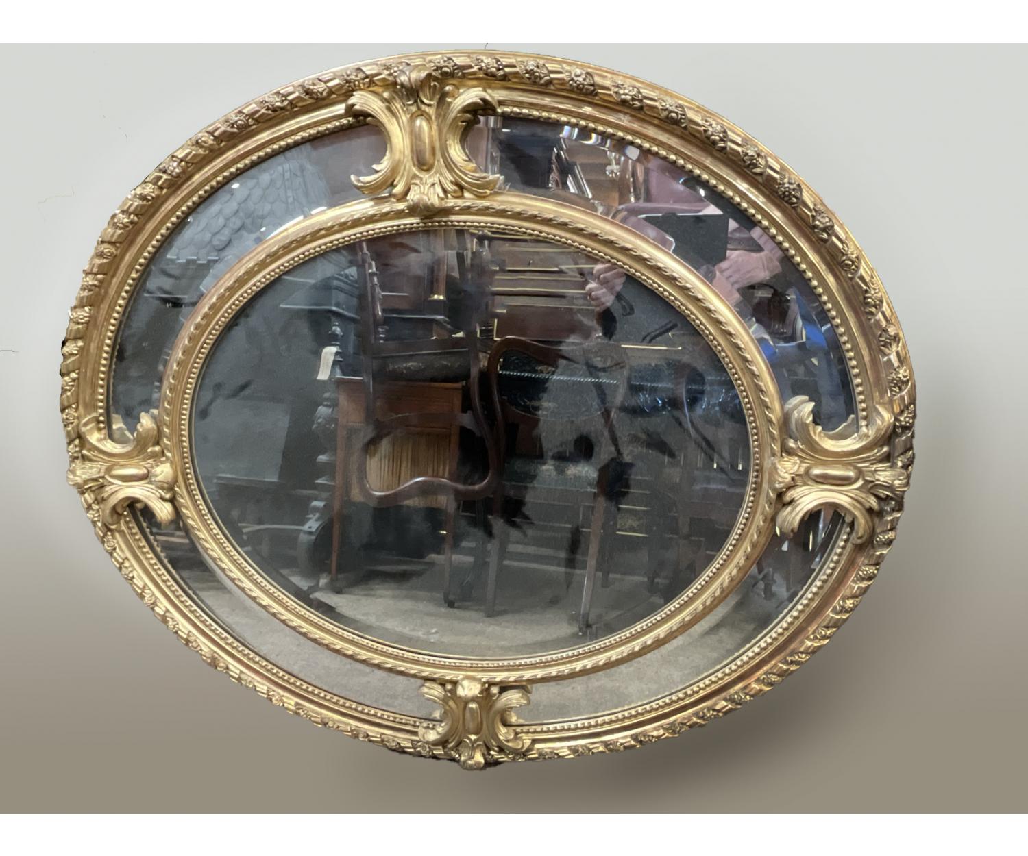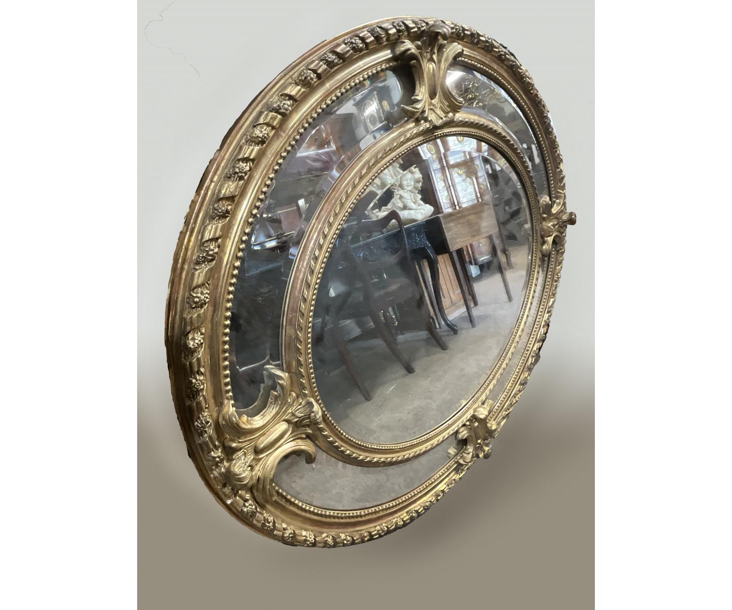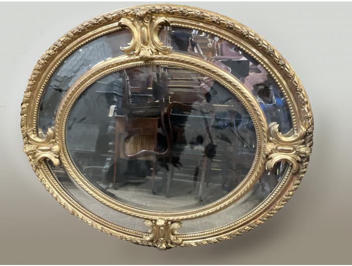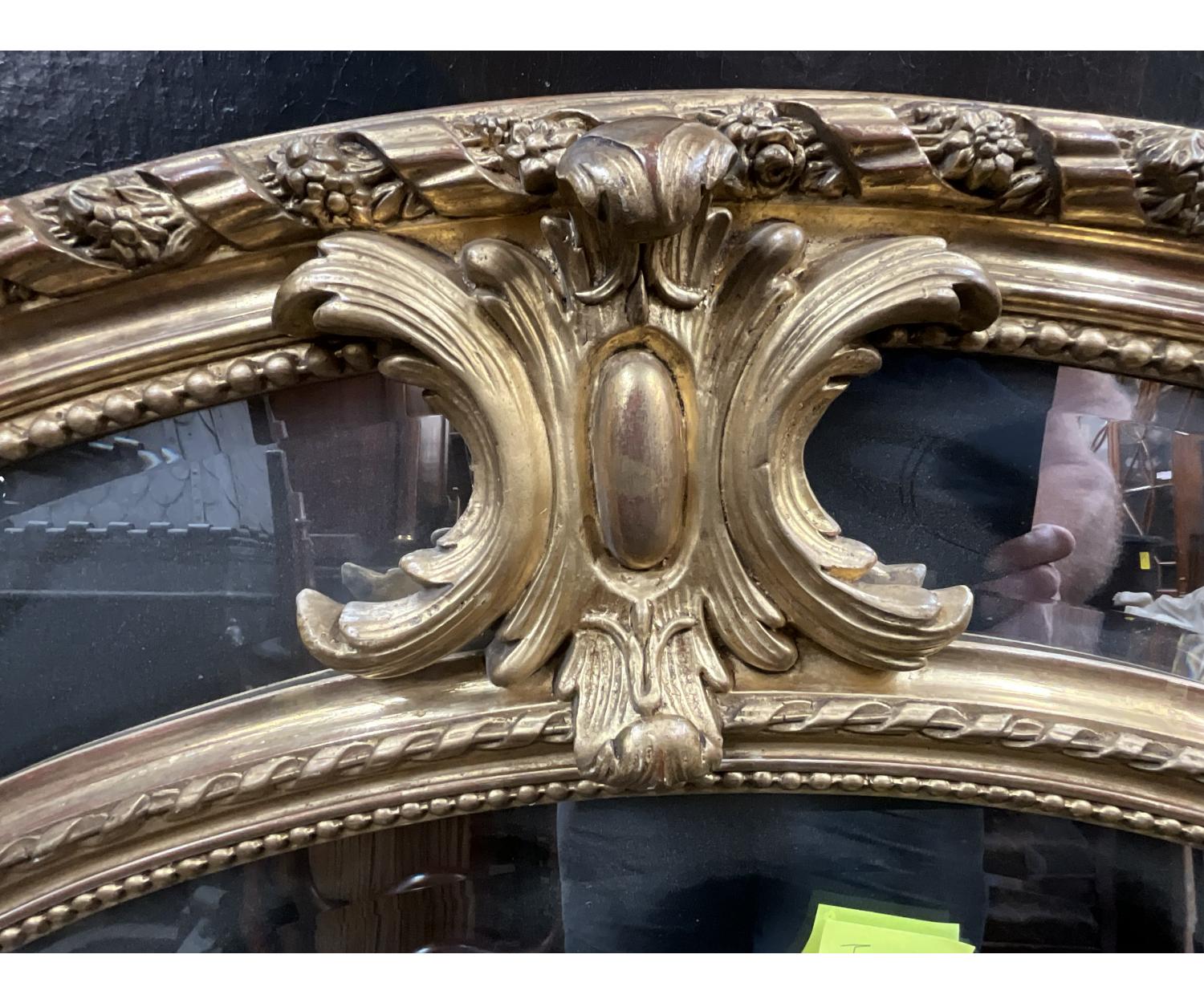 A good quality French border mirror. Victorian circa 1880. Impressive in size and ornately decorated with rose buds and scroll decoration, each of the five mirrors have a generous bevelled edge all held securely within a three inch frame with original back boards. Good quality gilding.