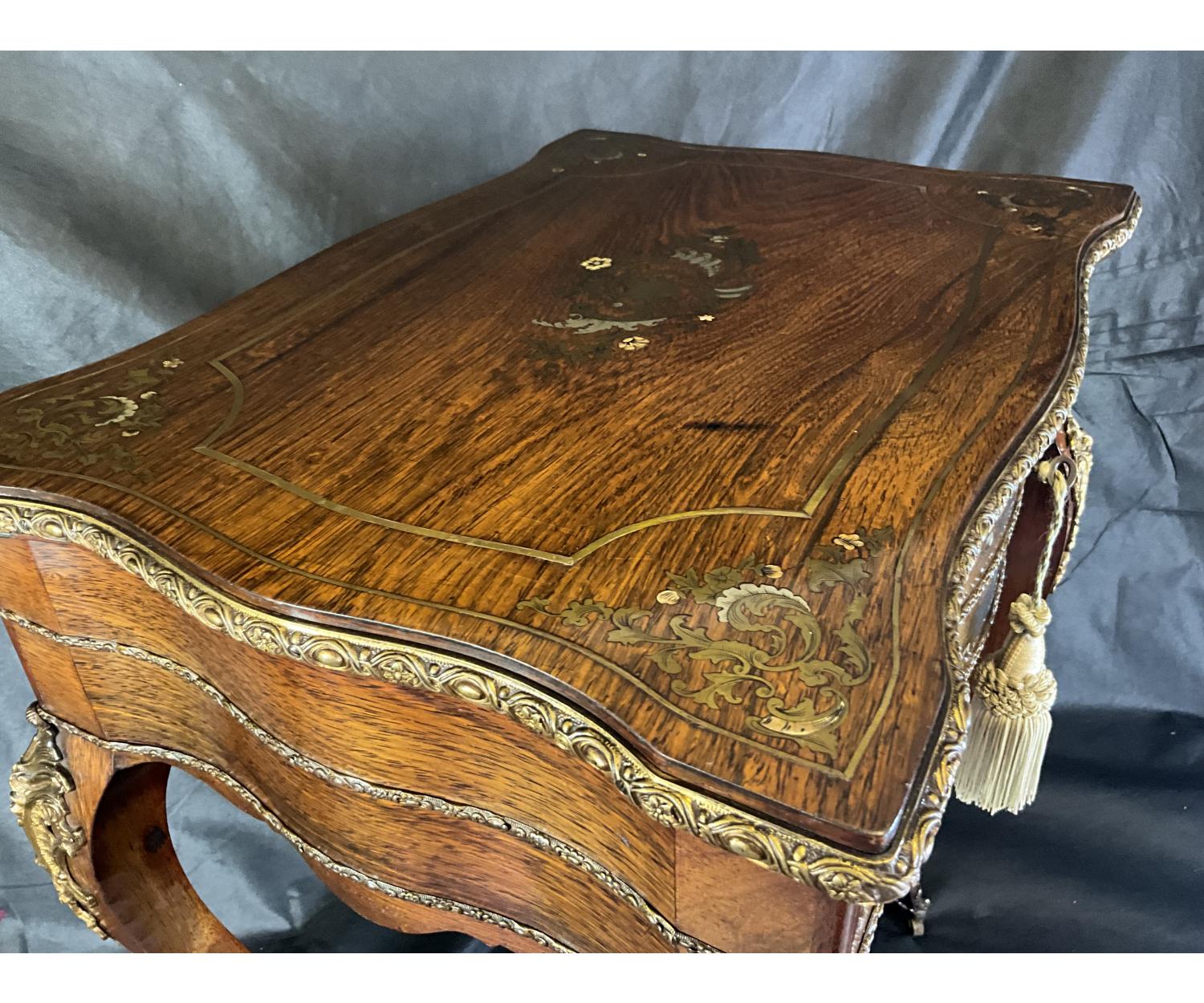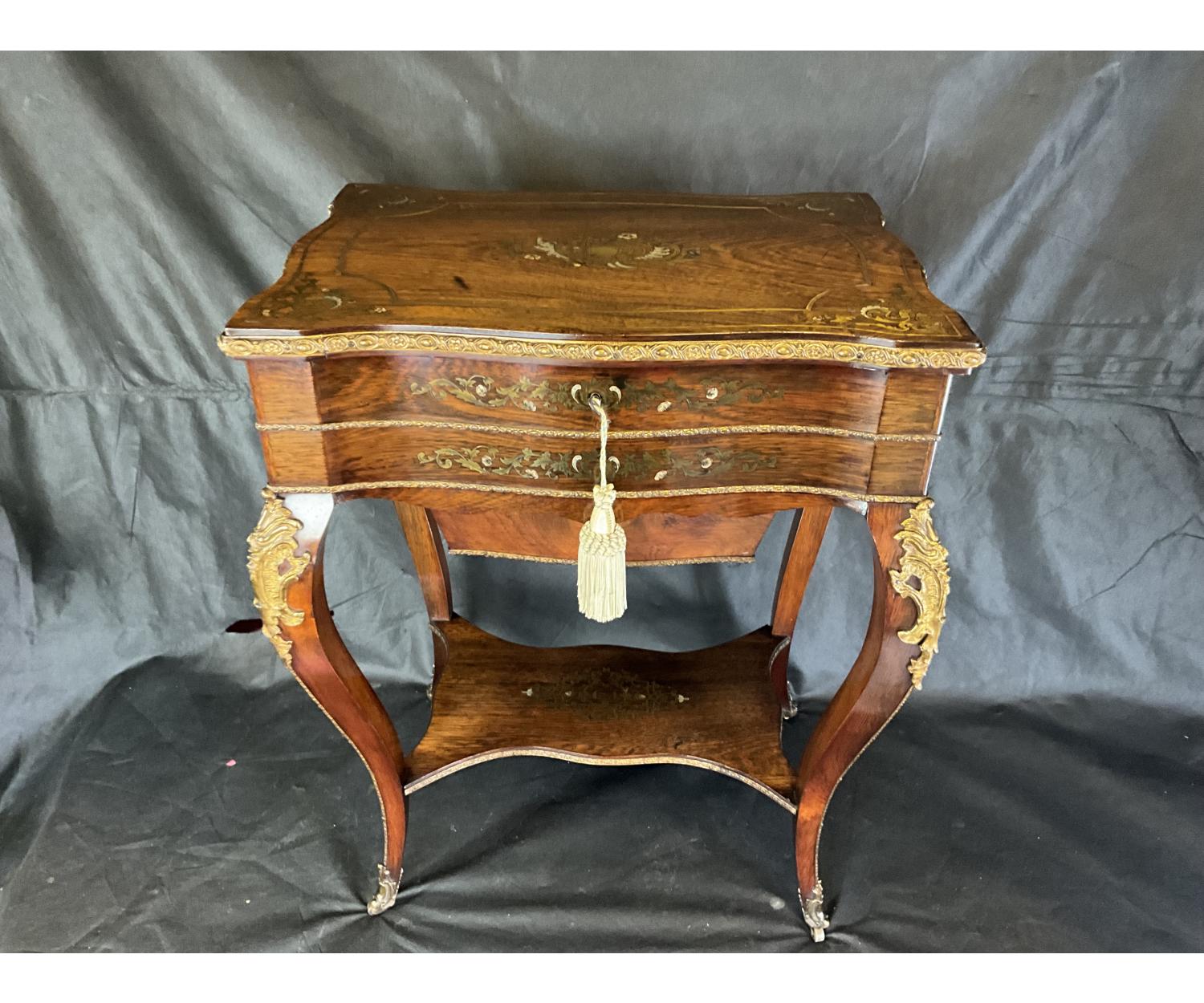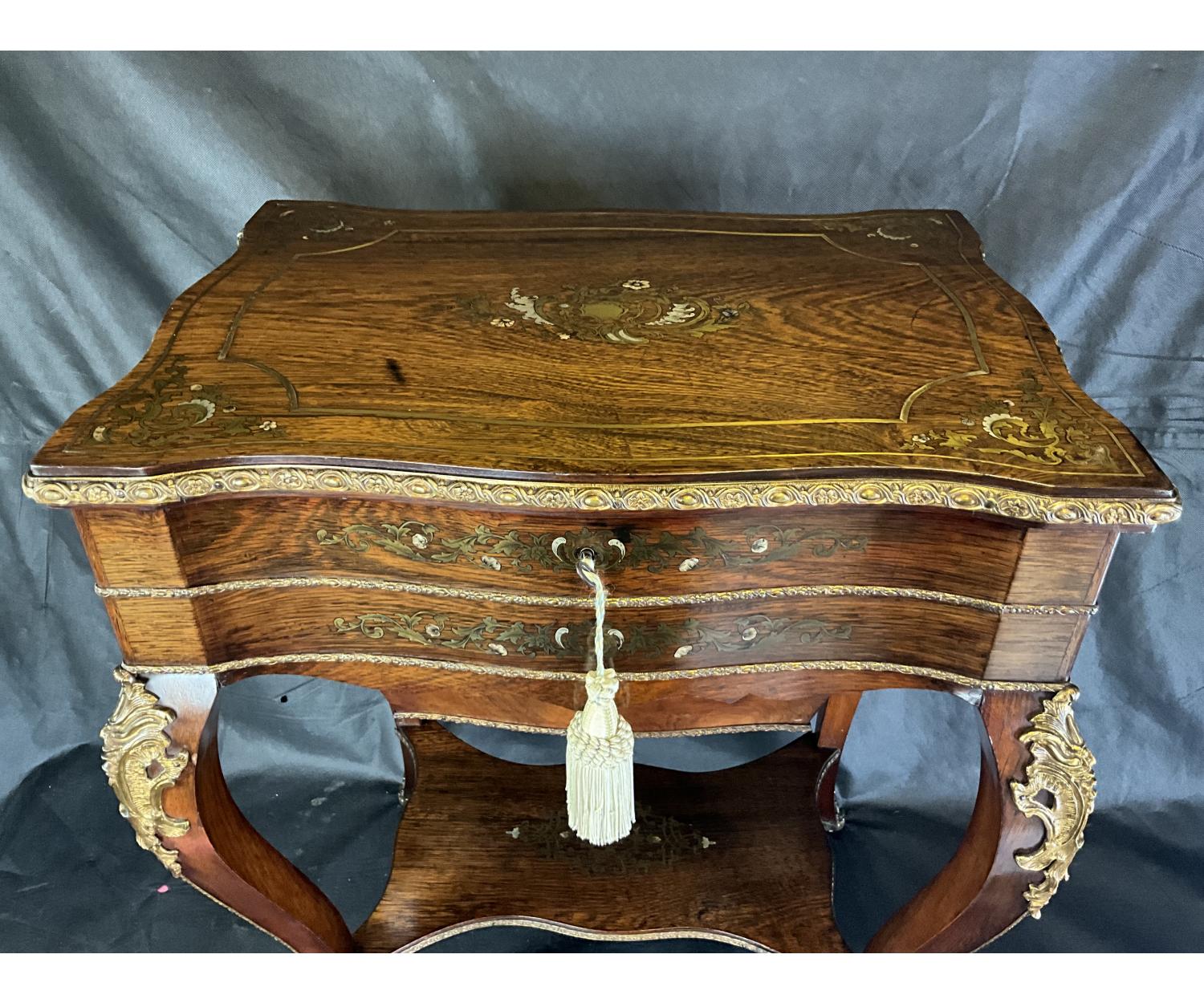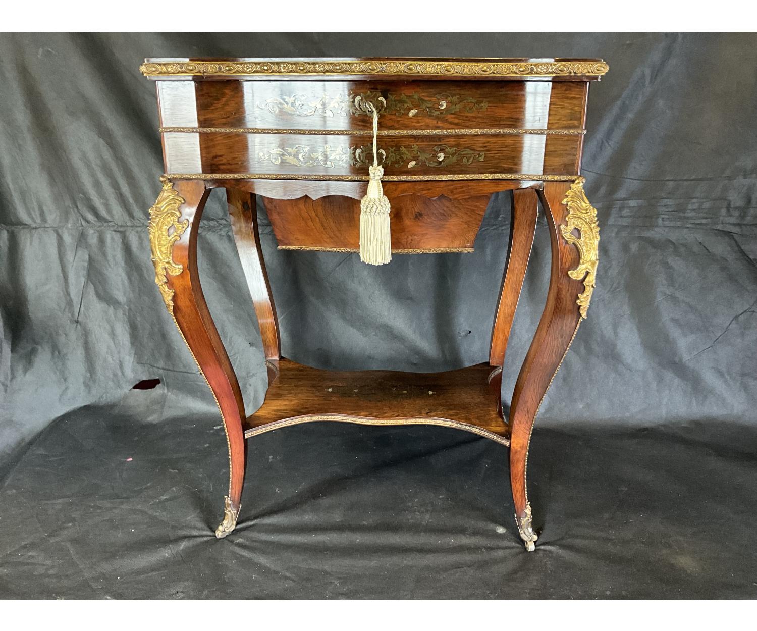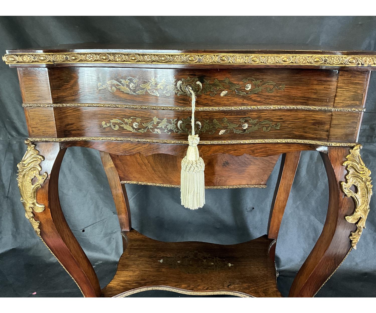 CA 2886 A Rosewood Work Table With Brass And Silvered Inlaid Details - £1150