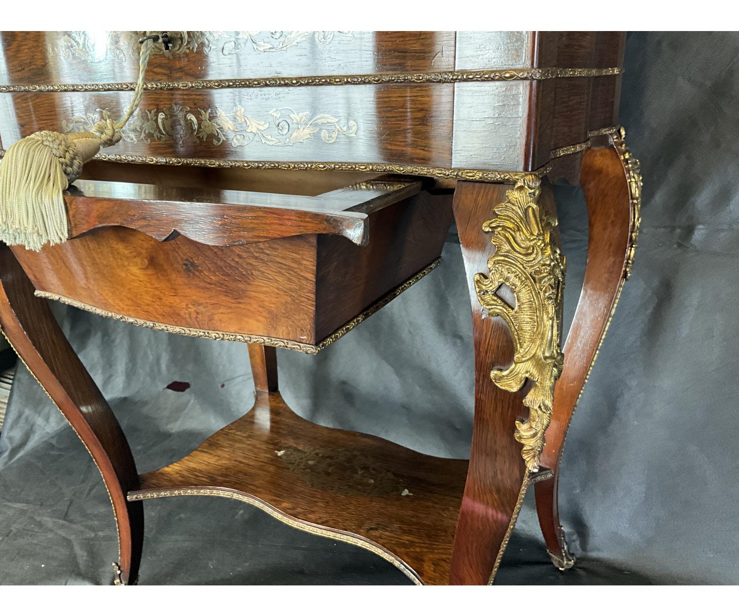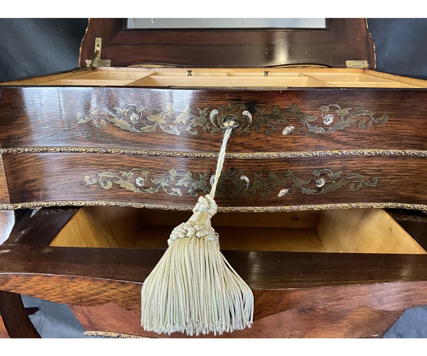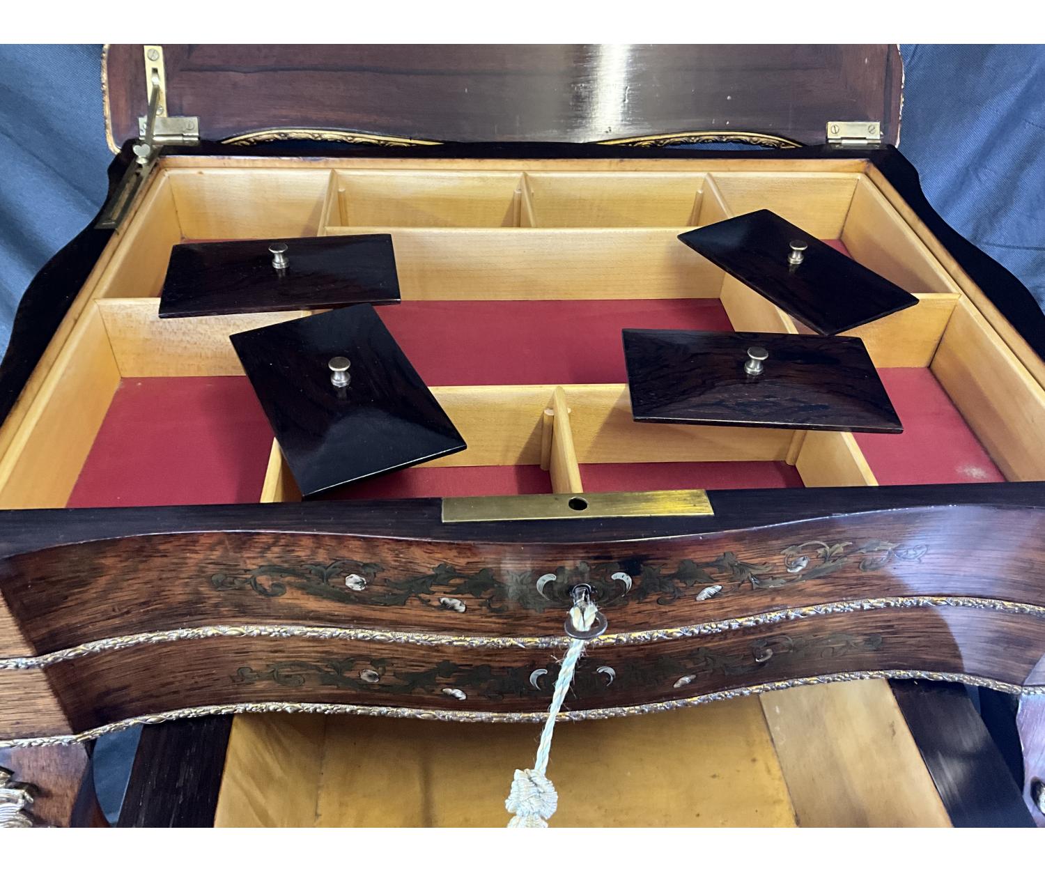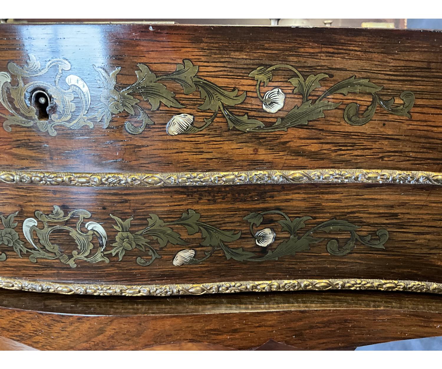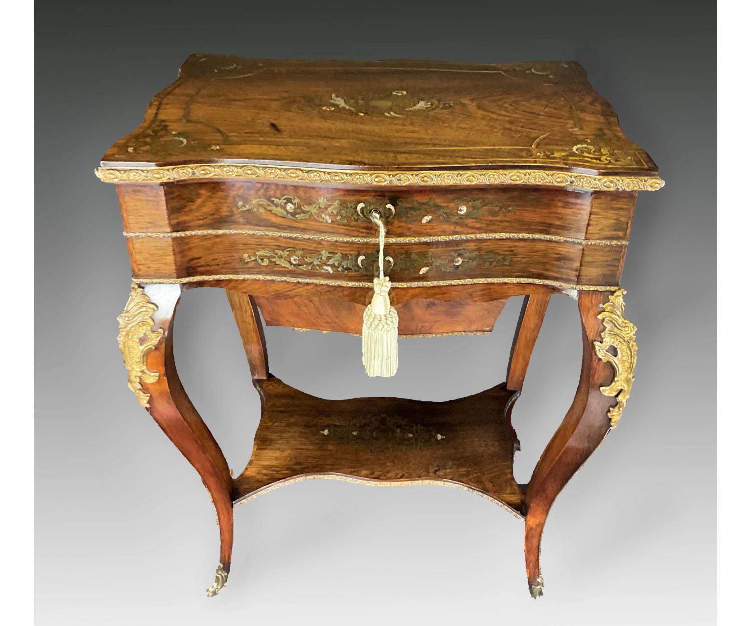 CA 2886 A Rosewood Work Table With Brass And Silvered Inlaid Details - £1150