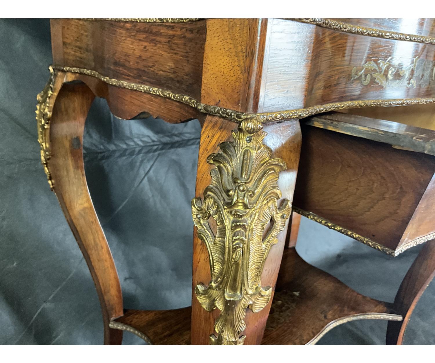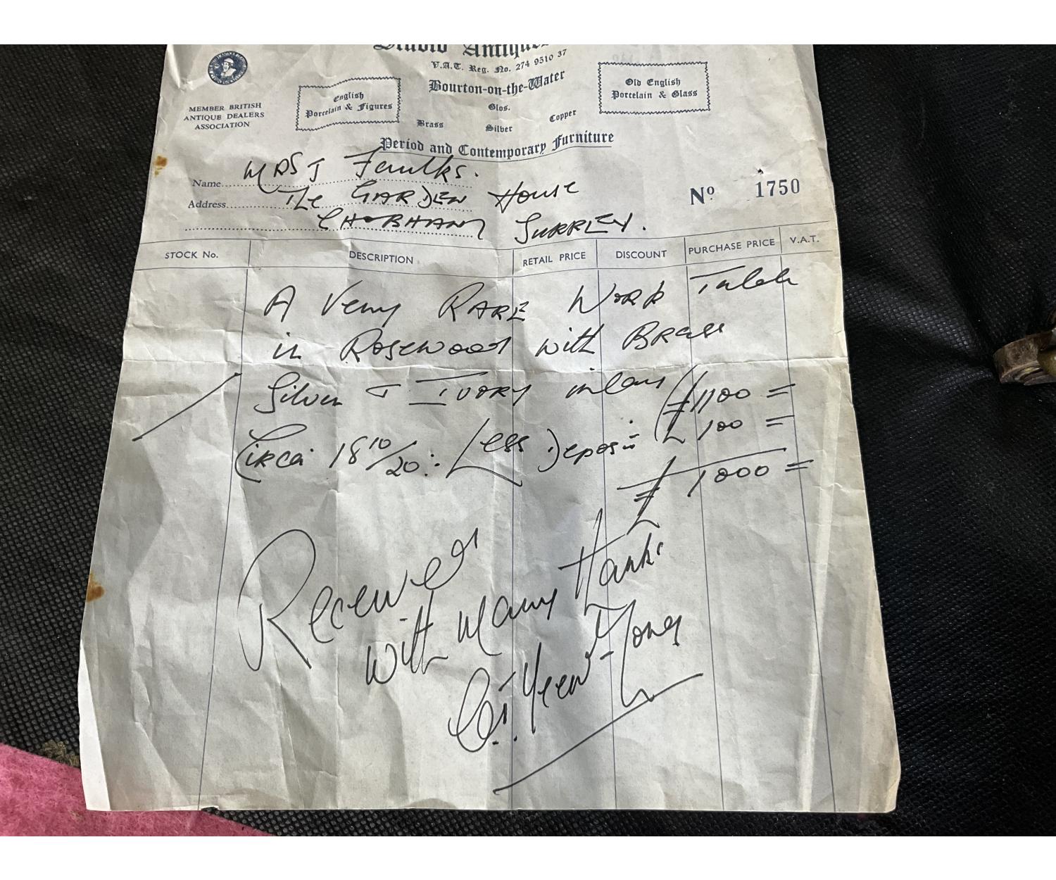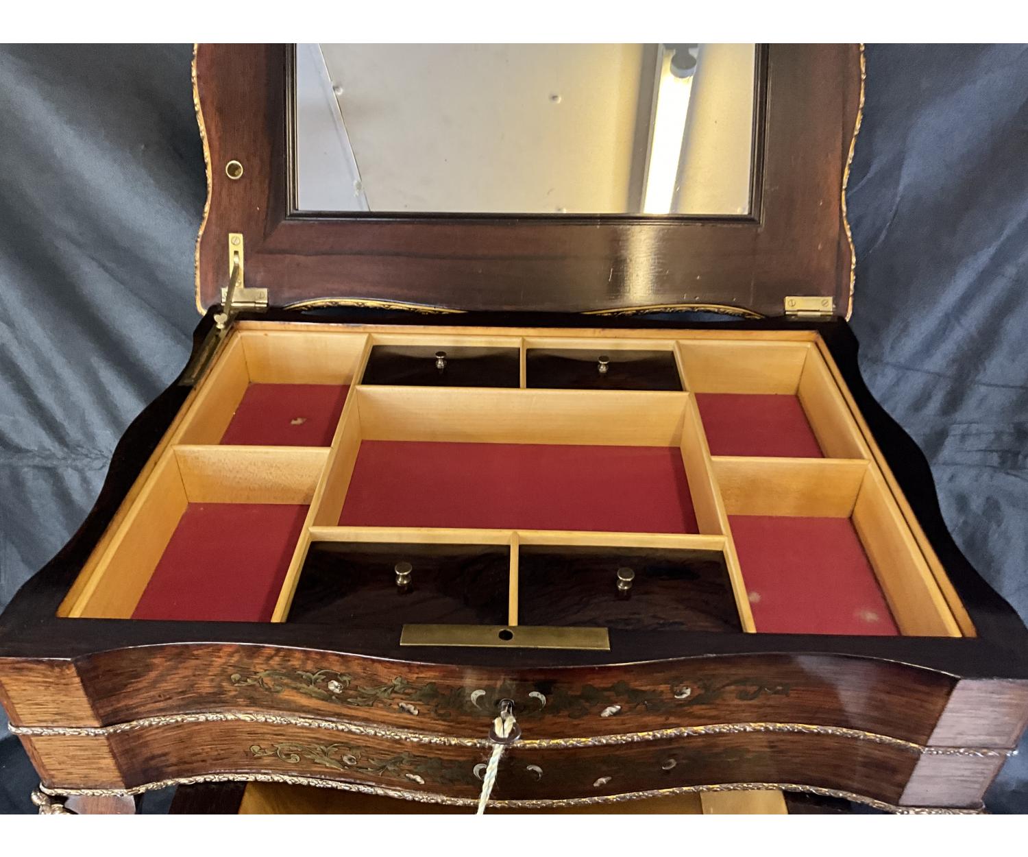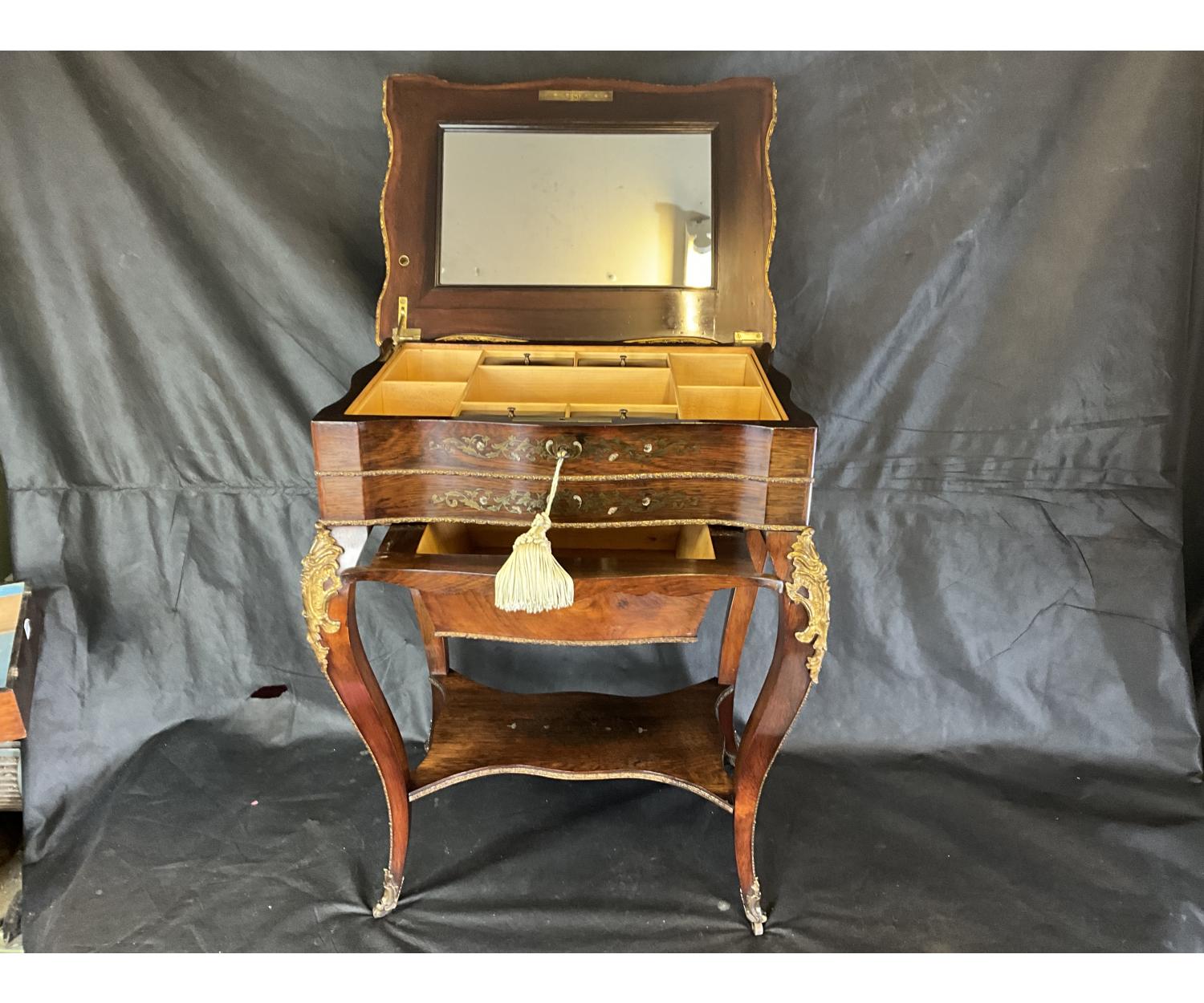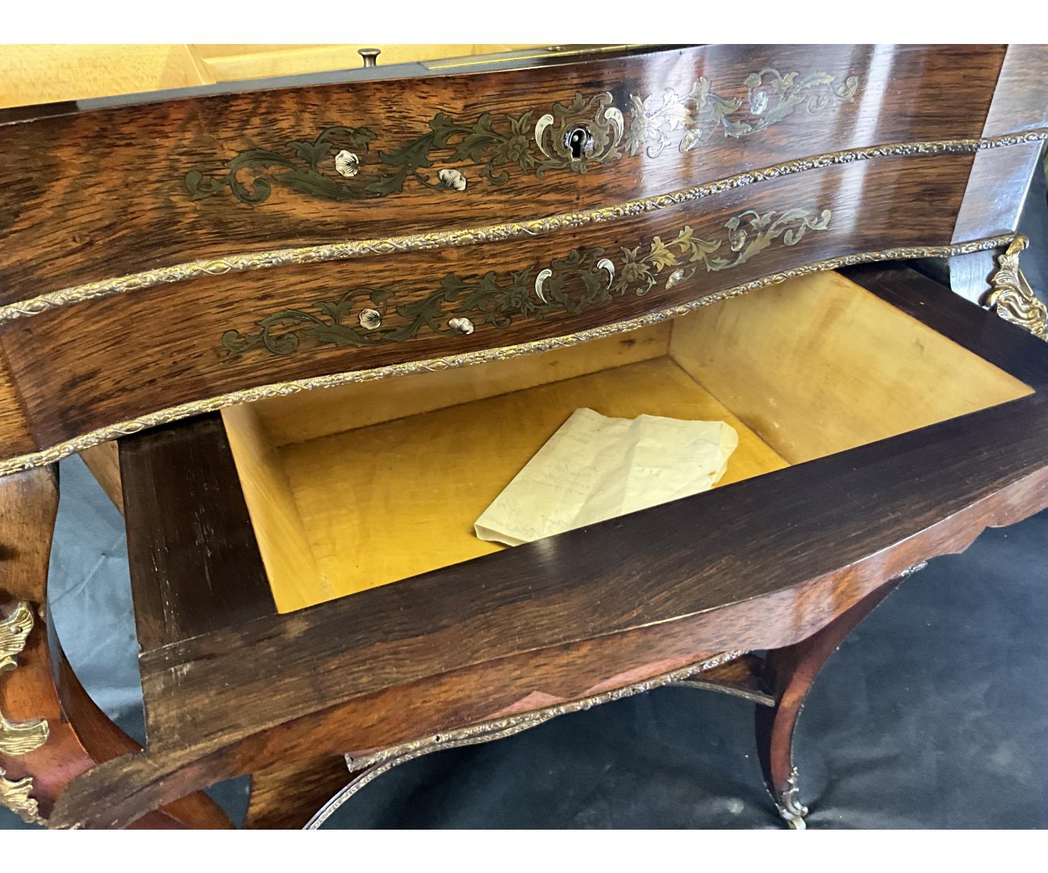CA 2886 A Rosewood Work Table With Brass And Silvered Inlaid Details - £1150