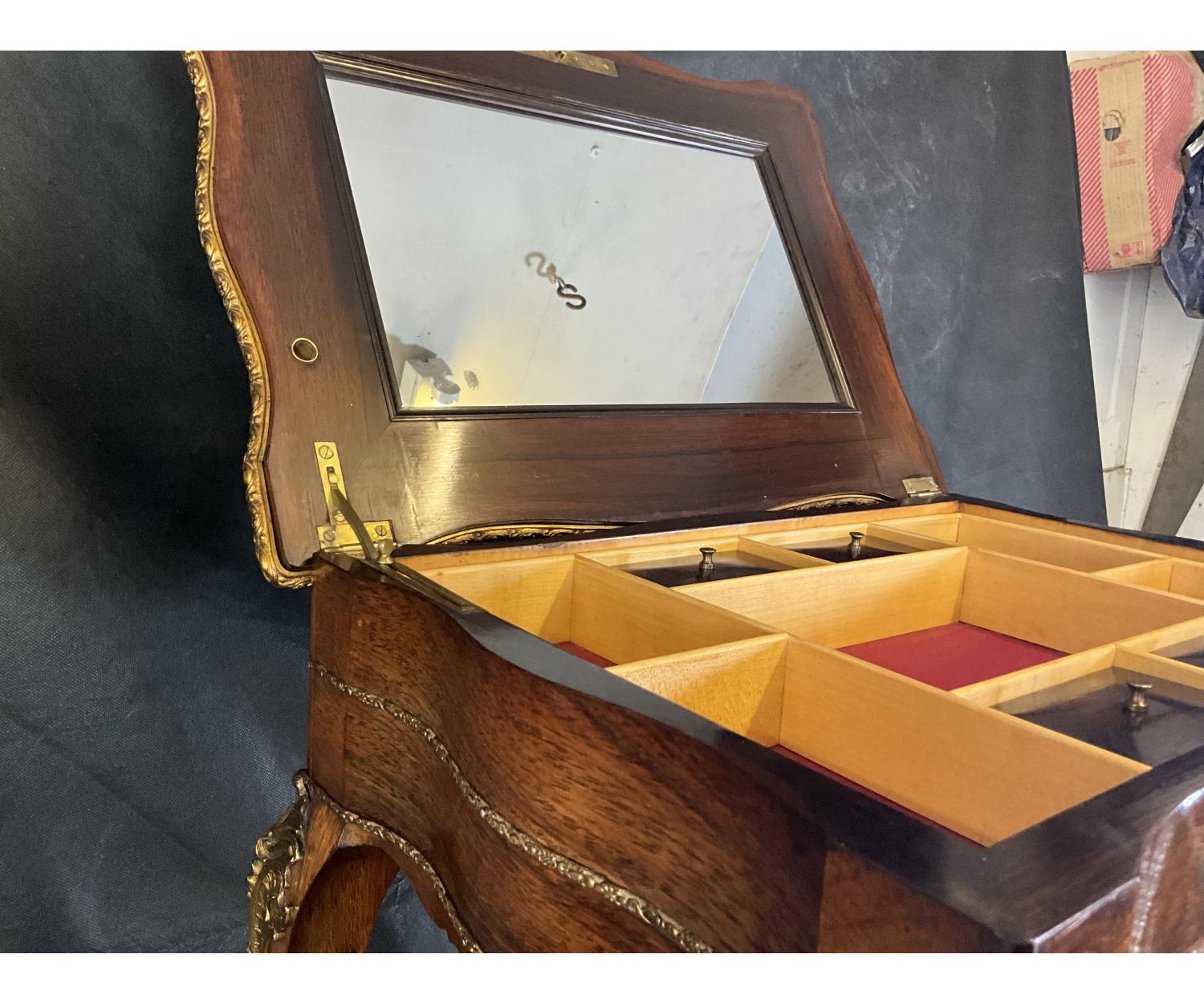 Made from high-quality rosewood, this table is not only stylish but also durable. The antique piece features a stunning rosewood finish with brass and silvered details that complete the table's exquisite look, it also has added protection with brass mounted shoulders and perimeter detail, raised on small brass castors this table is Ideal for antique furniture collectors, a rare find that will add a touch of class to any room.