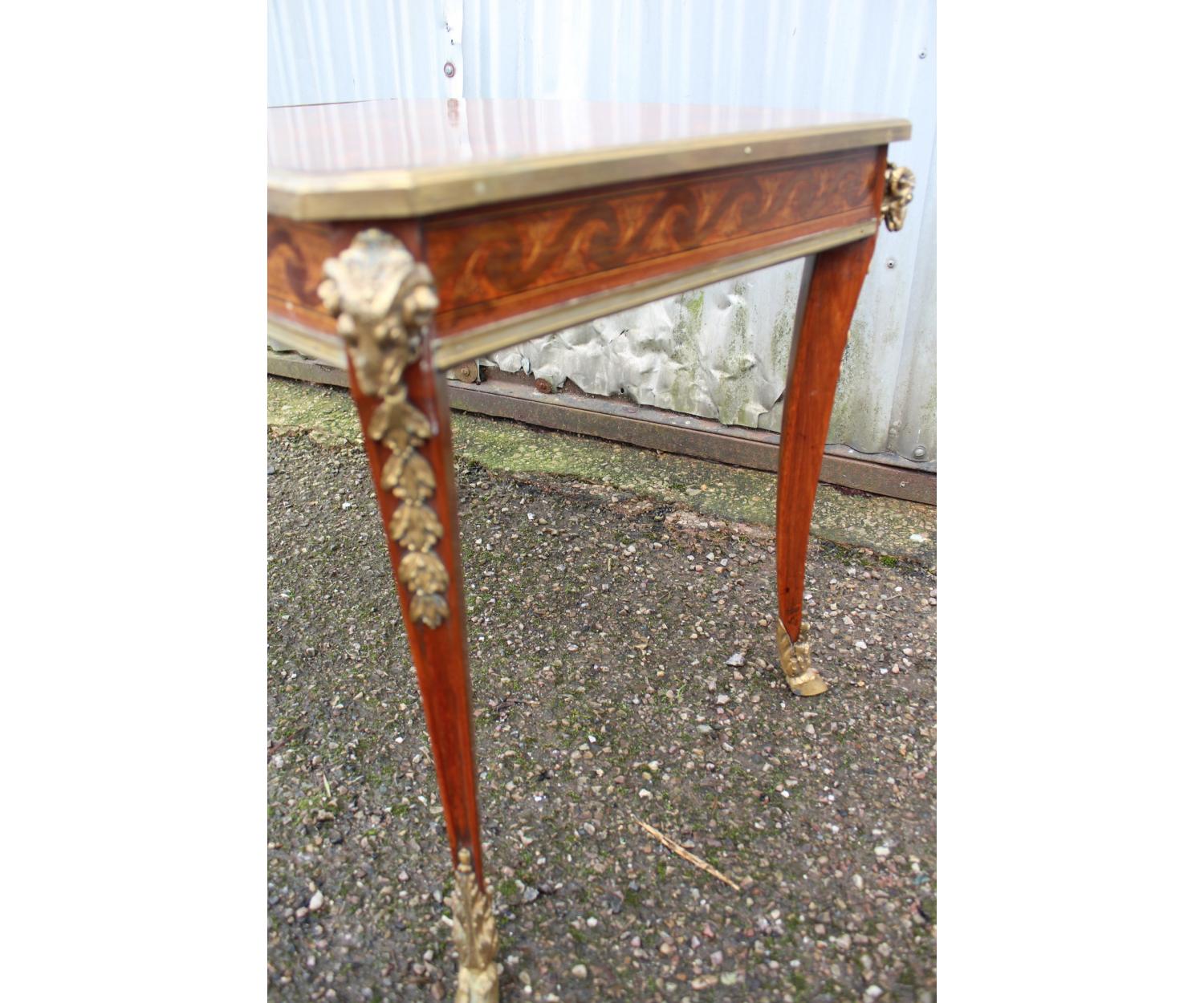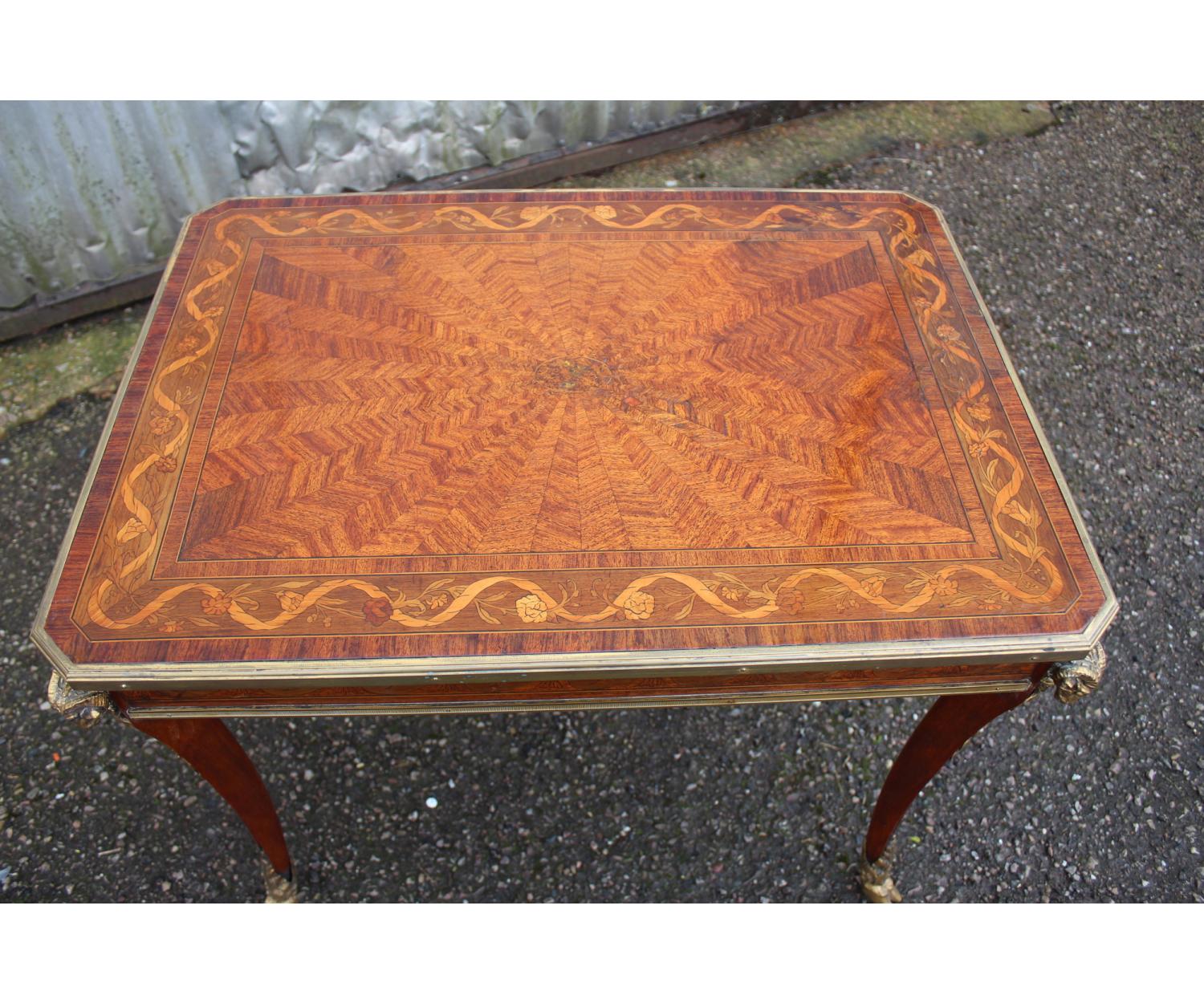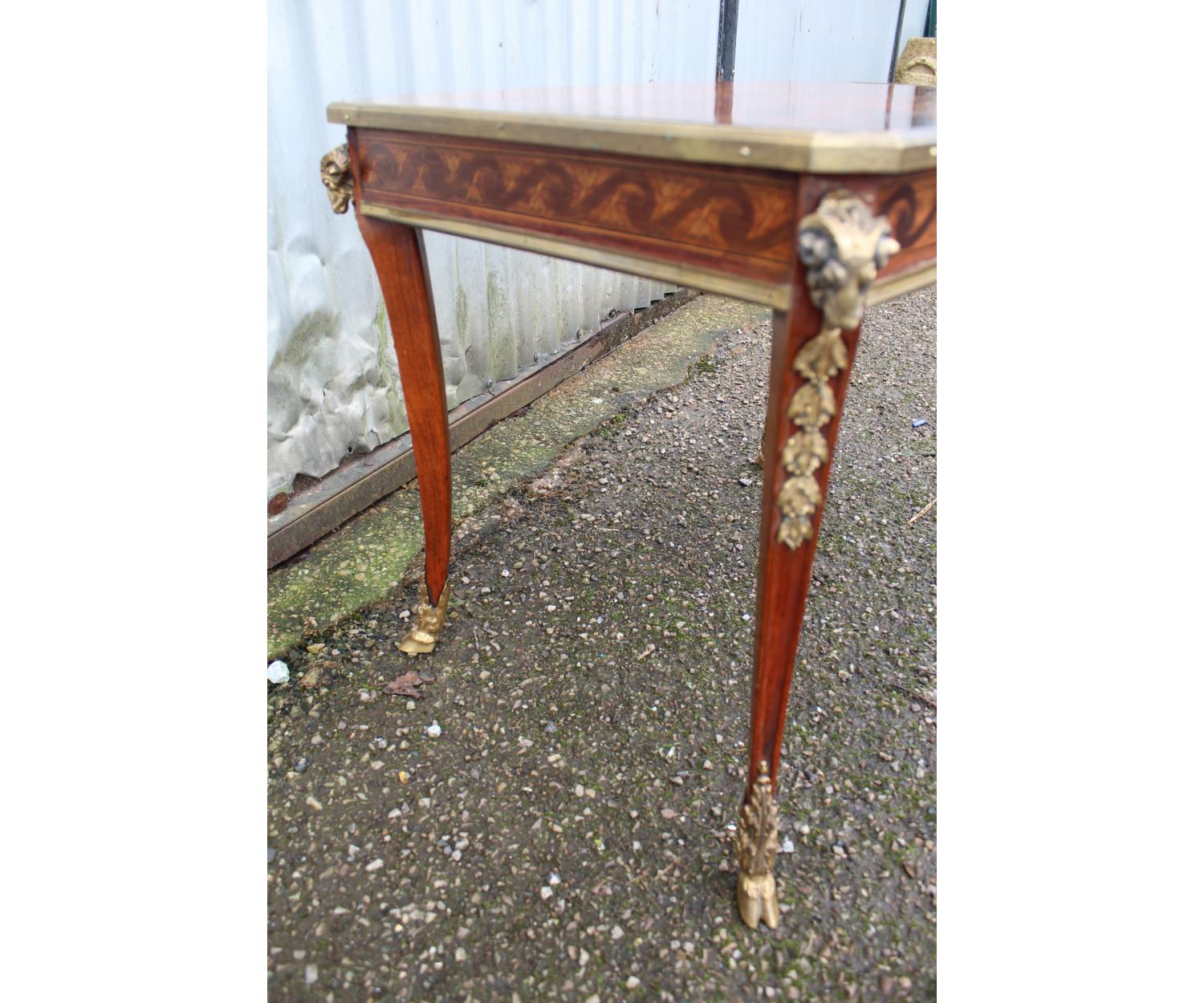 A French Parquetry and Marquetry Occasional Table decorated with rams heads and hoof feet. Circa 1900
