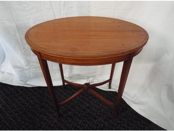 Oval satinwood occasional with ebony inlay and stands on square tappered , Circa 1910