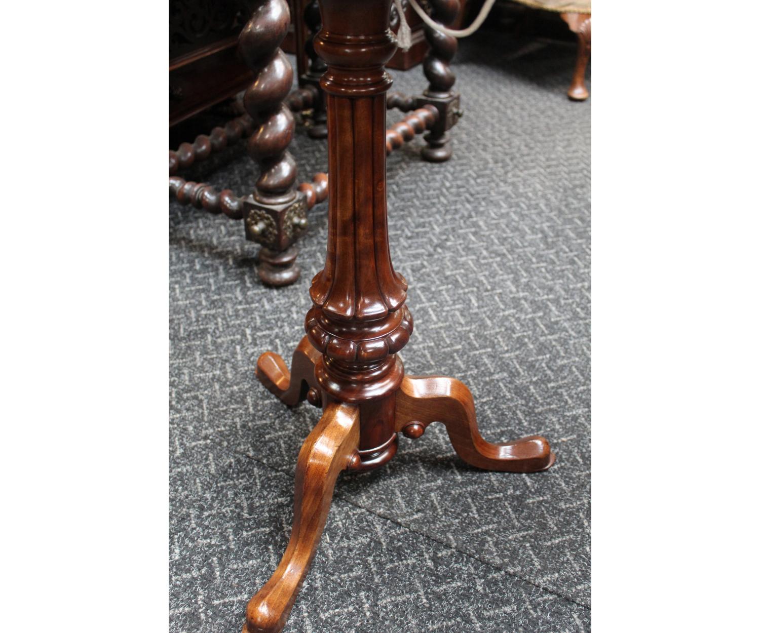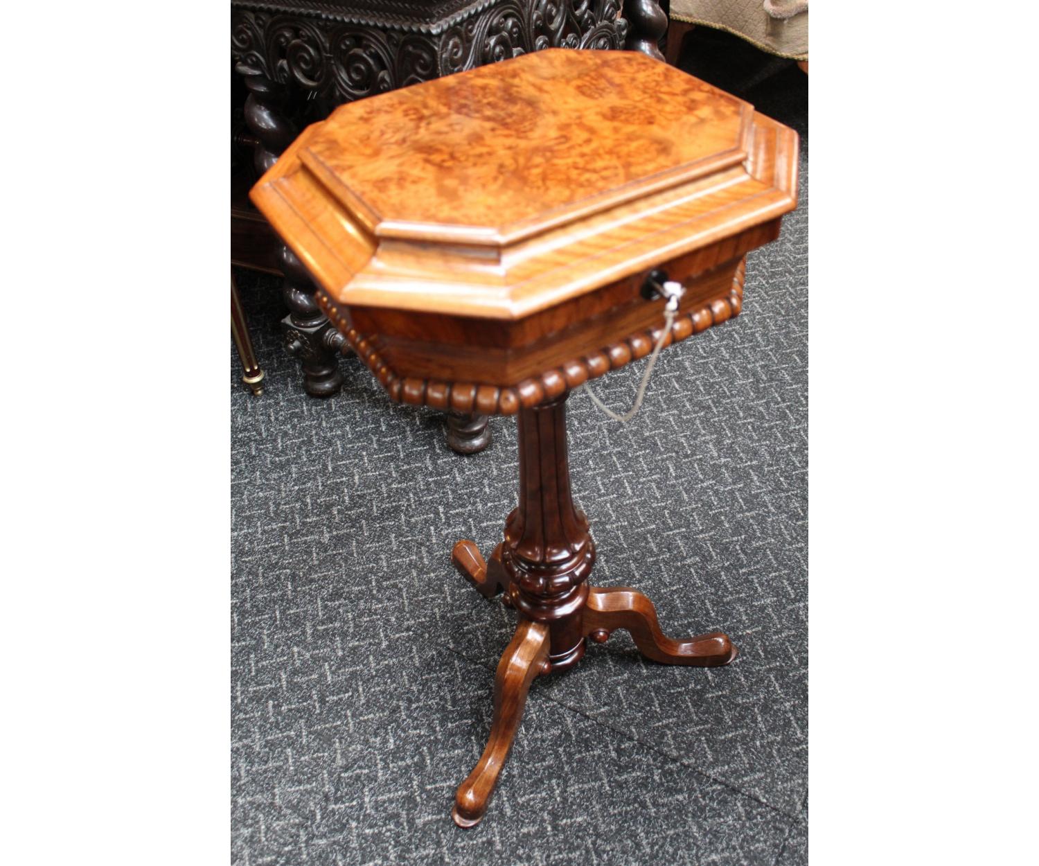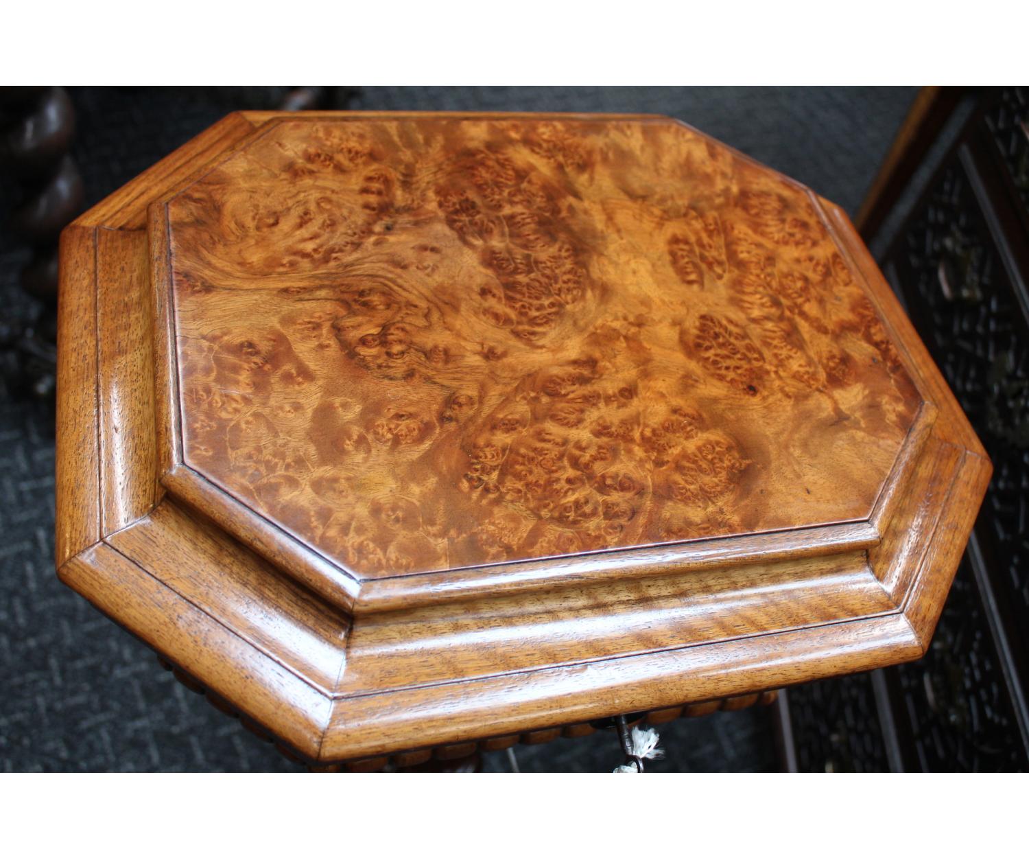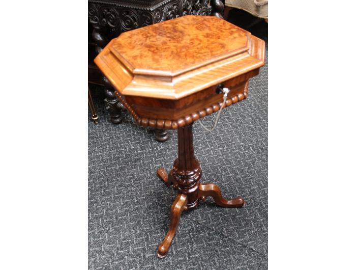A Walnut Teapoy. Has central column and stands on three splayed feet. Inside two oval caddies. Circa 1860
