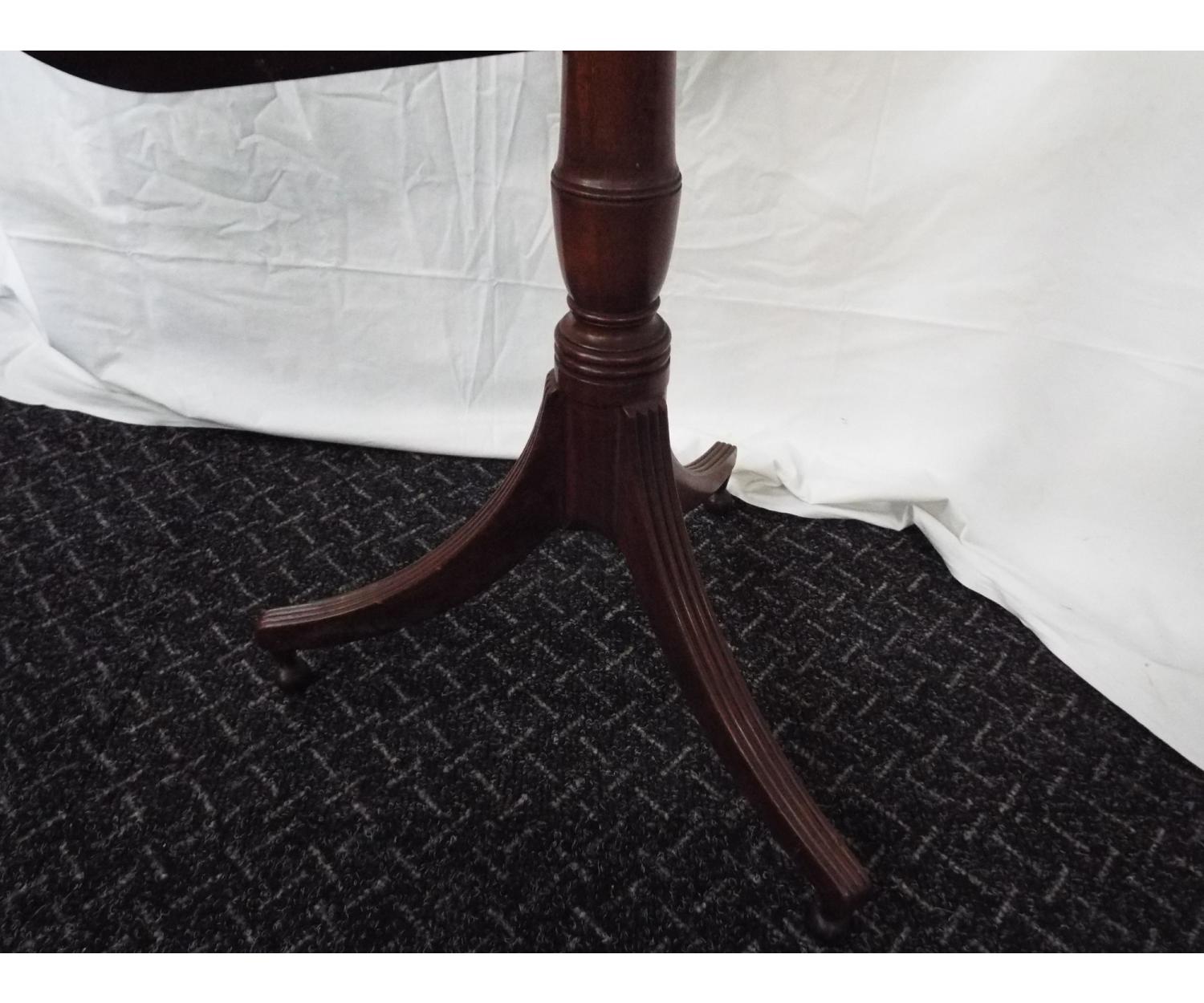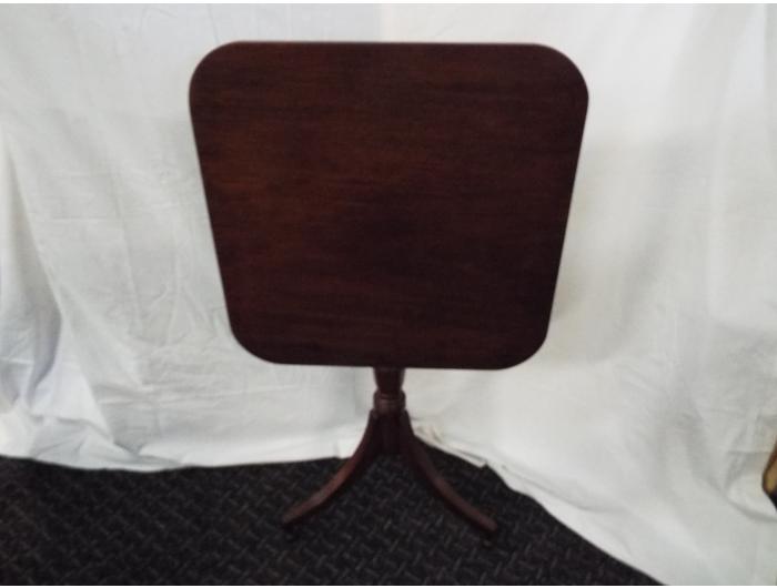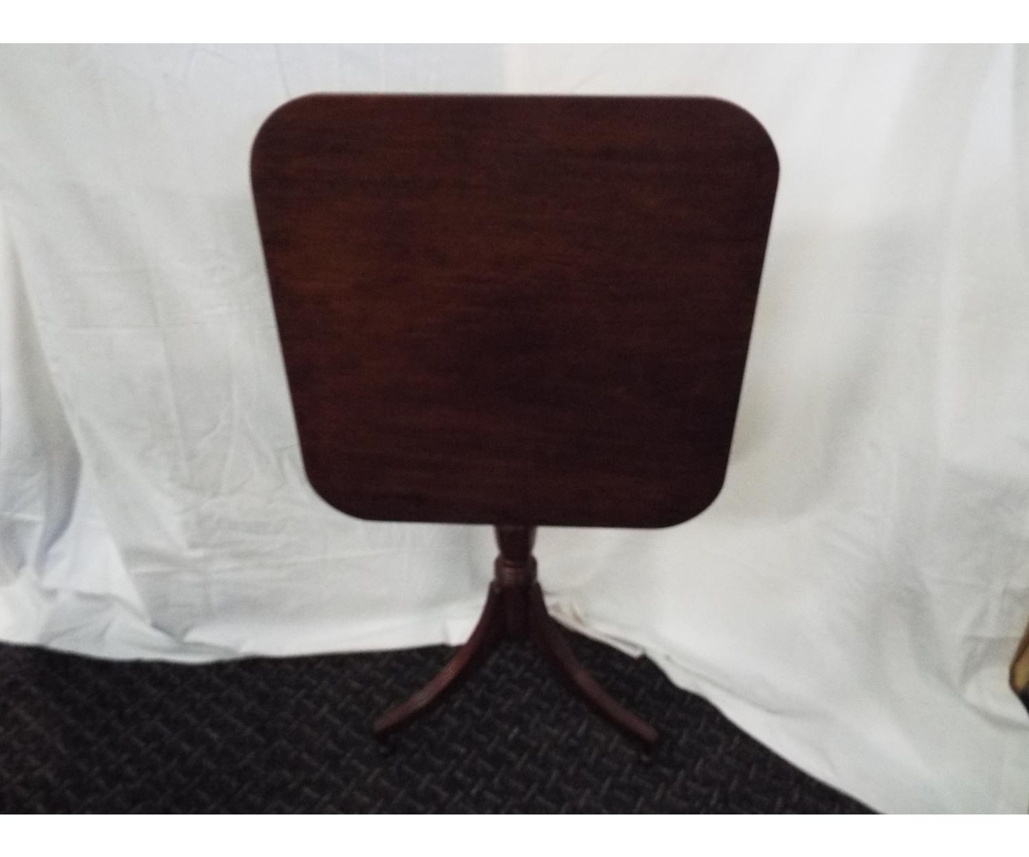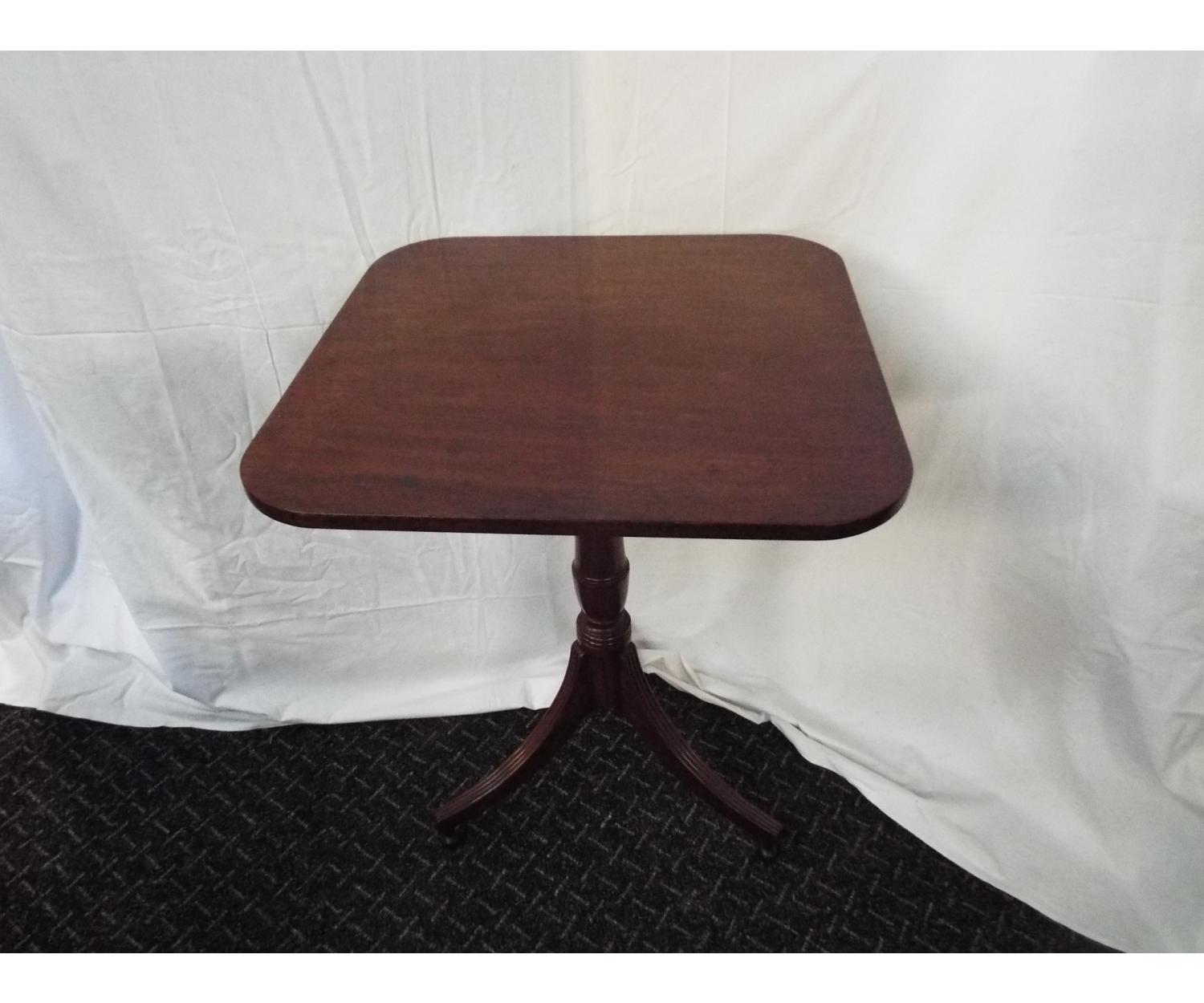 Mahogany square top wine table turned central support and three splayed legs, Circa 1810