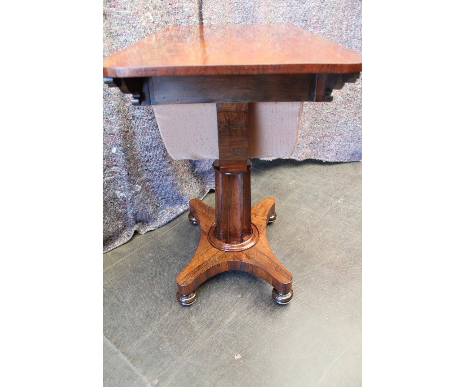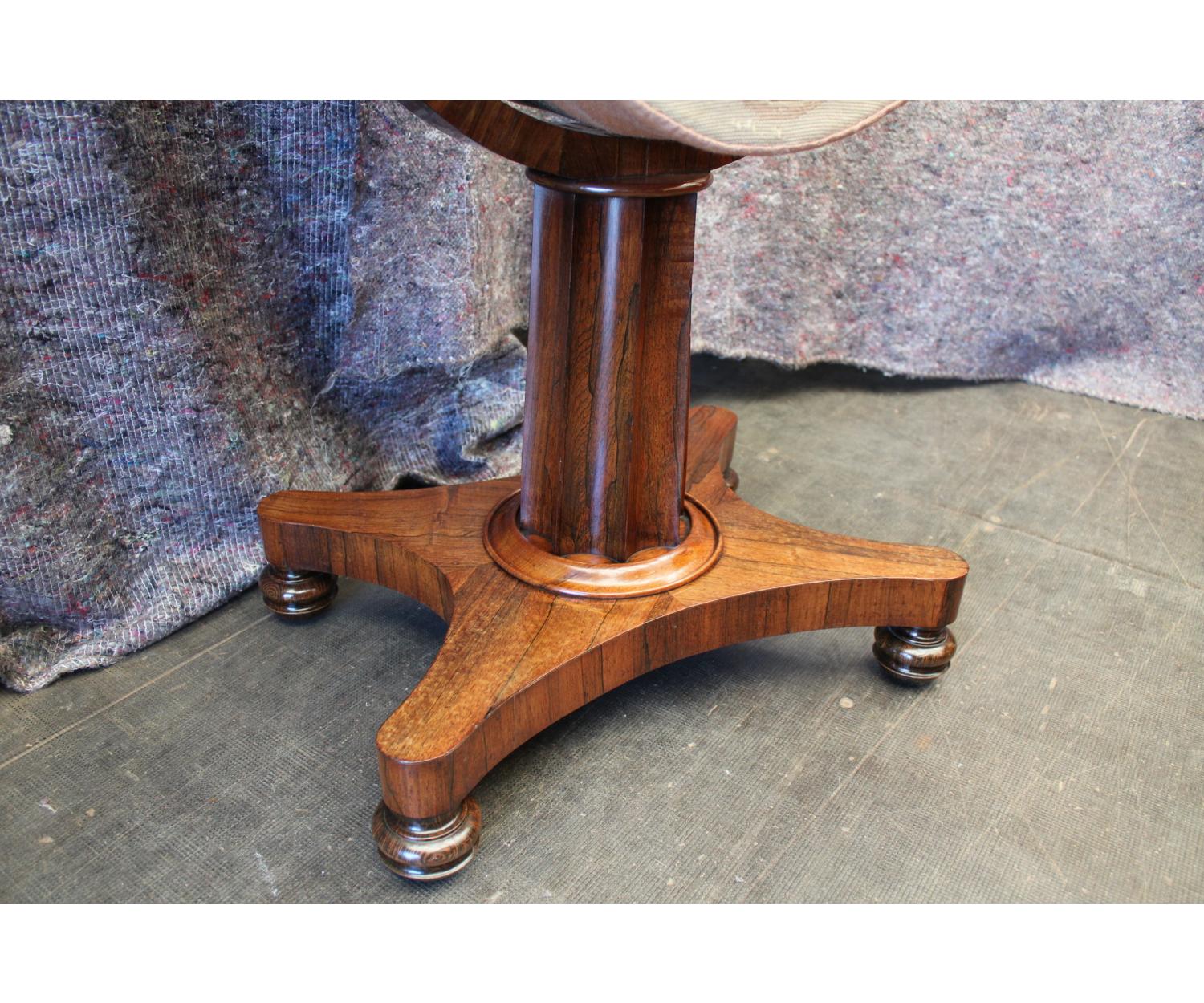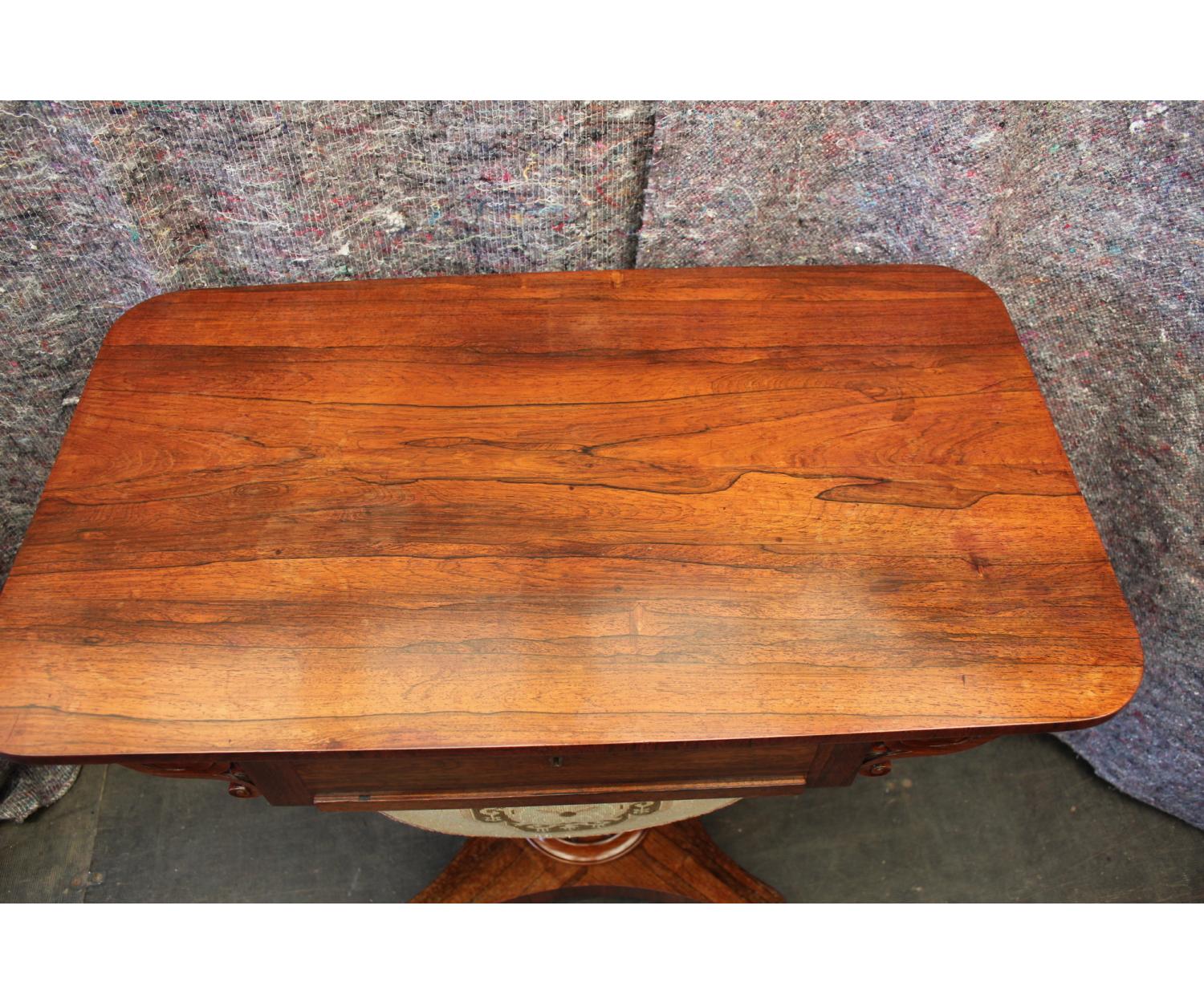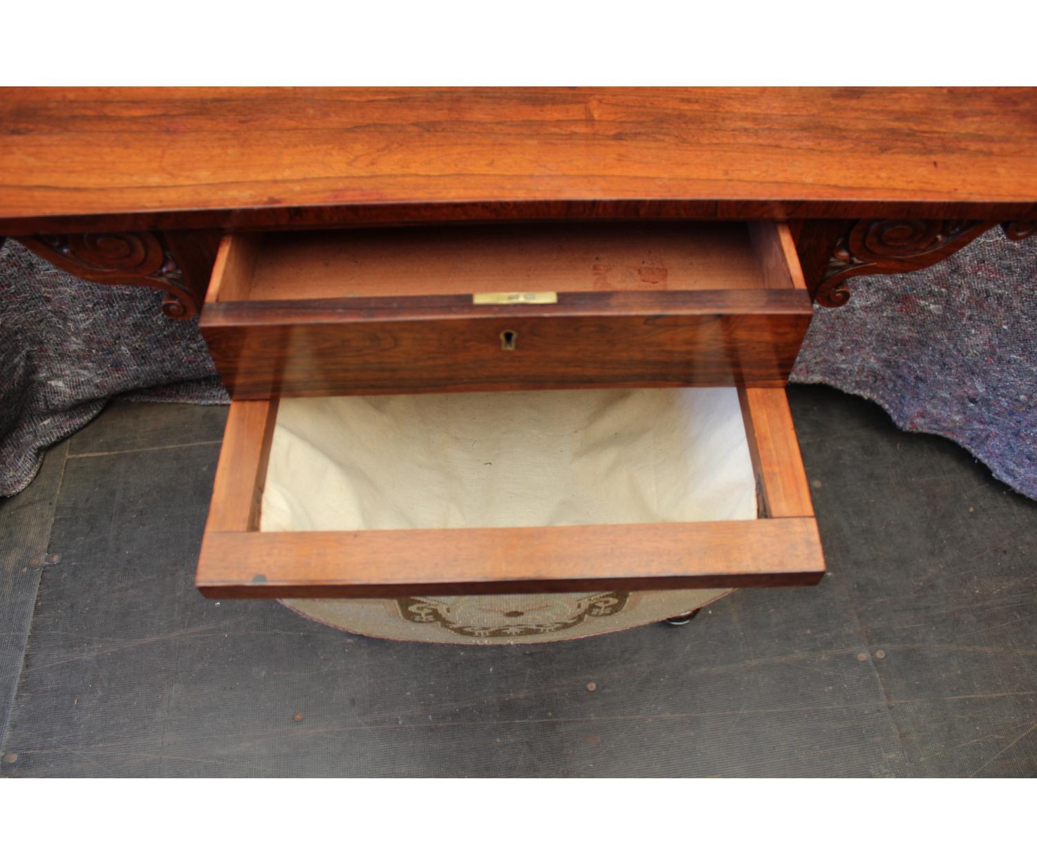 Rosewood Work Table. Has one drawer and basket with tapestry front. Supported on central column and splayed base. Circa 1860
