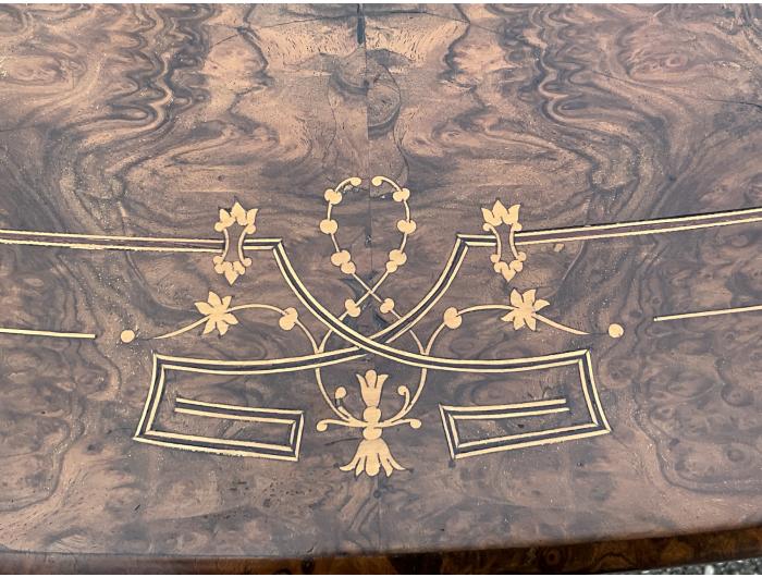 This beautiful Victorian Sutherland Table made from high-quality burr walnut, this table boasts a stunning high-polish finish that adds a touch of elegance to any room. Measuring 121cm in length, 84cm in width and standing at 72cm tall, this table is the perfect addition to any dining room or living space.
