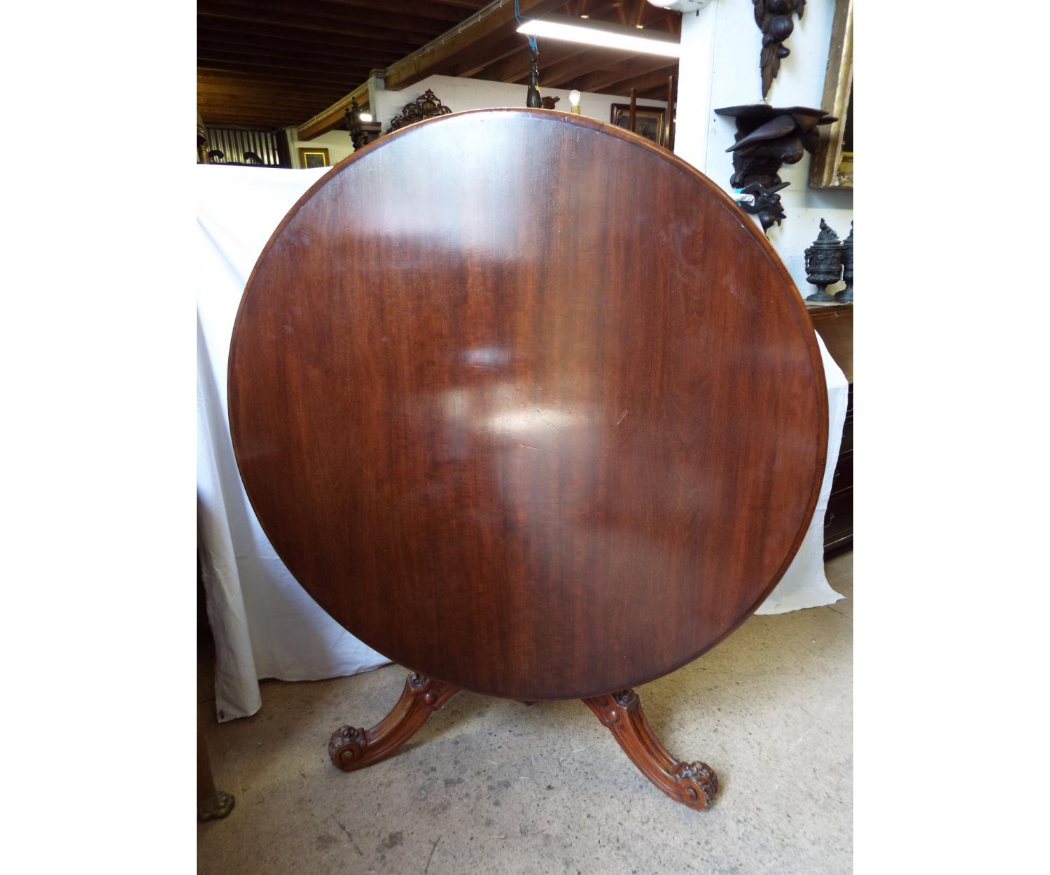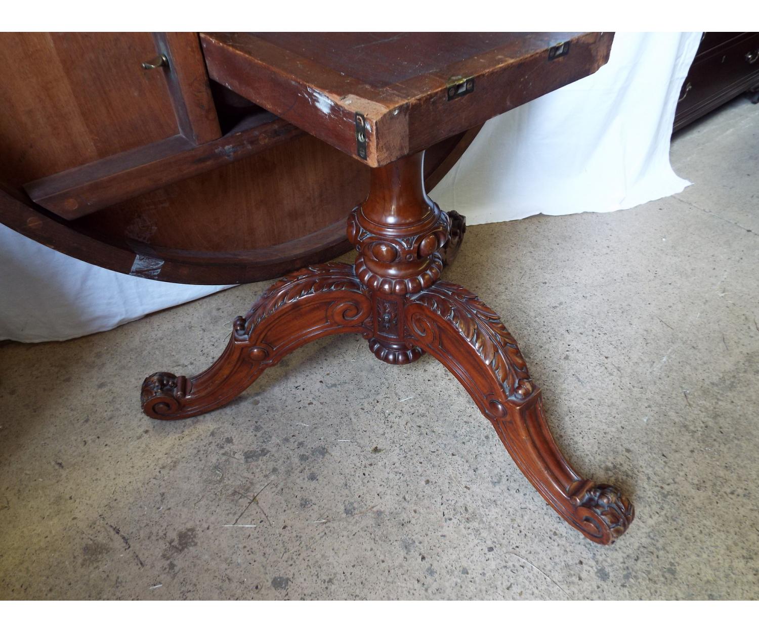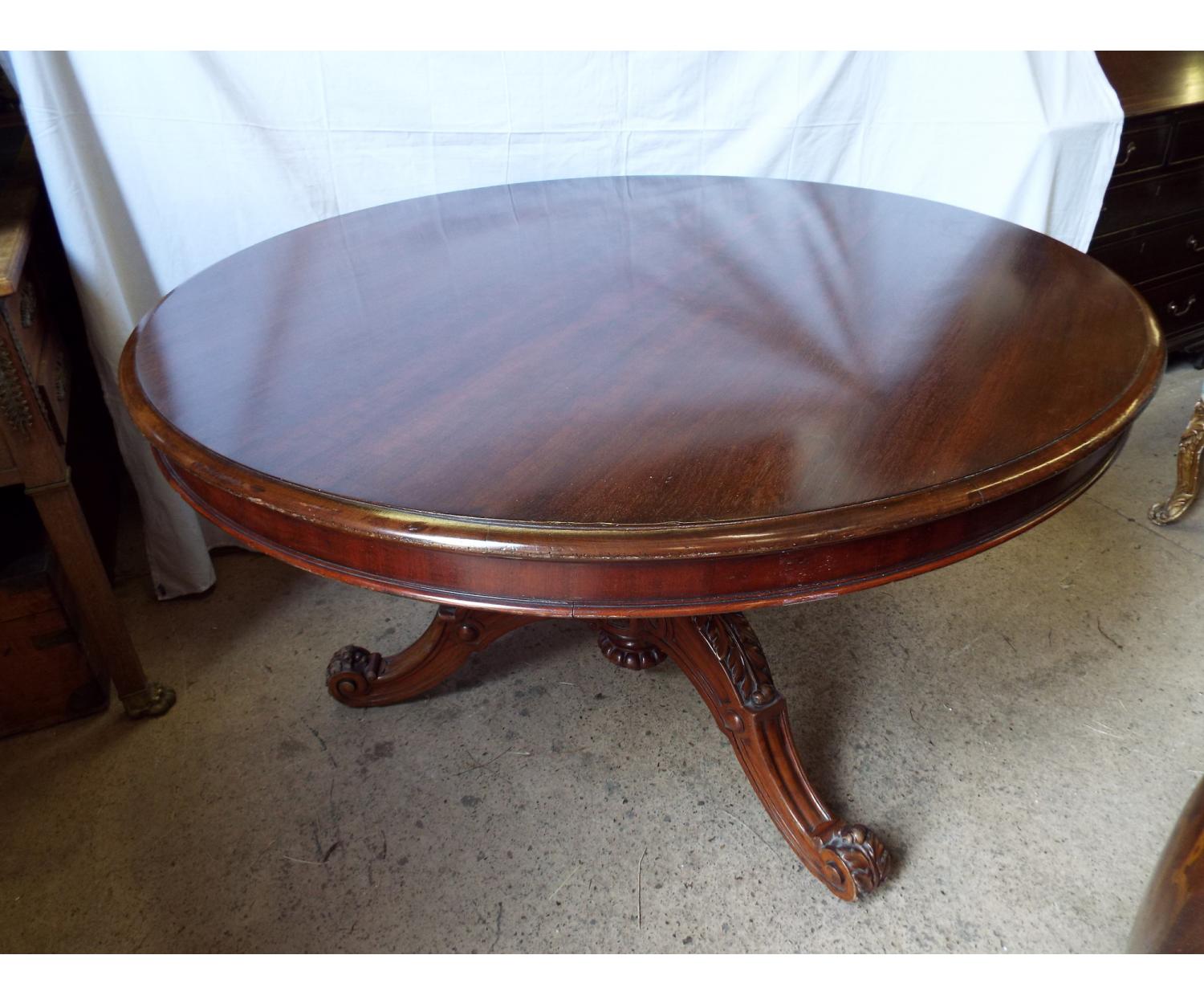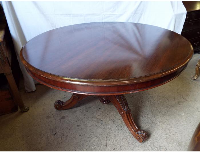 Mahogany looe table. The top is supported with central column and three splayed legs (in need of restoration will sell for £875 as is or £1350.00 restored). Circa 1870